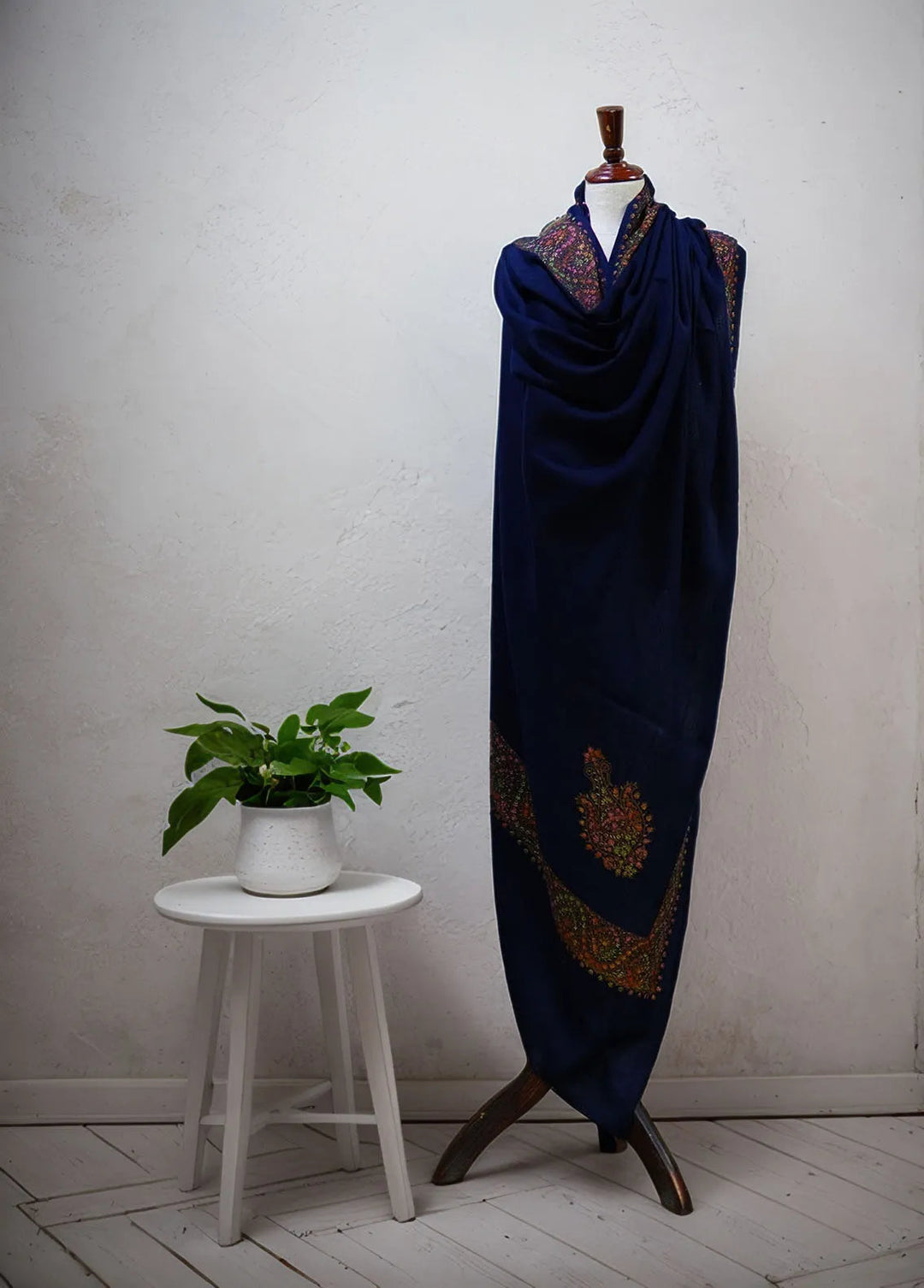 Sanaulla Exclusive Range Pashmina Shawl D-16 Navy Blue 4 - Winter Collection