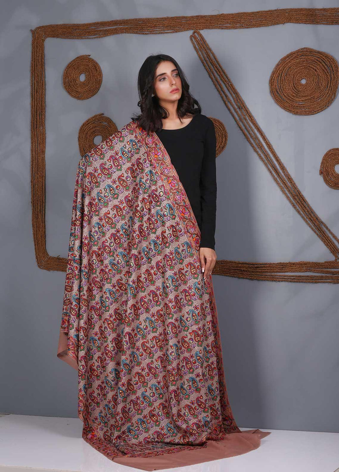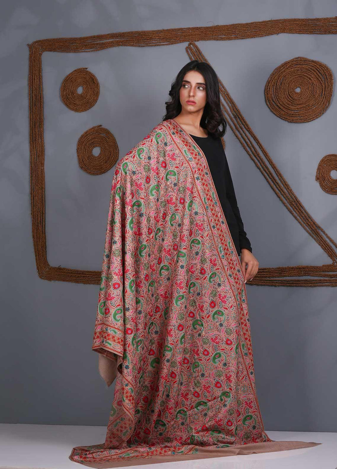 Sanaulla Exclusive Range Embroidered Pashmina Shawl SU21PP MIR-31 Fawn 1 - Pure Pashmina Shawls