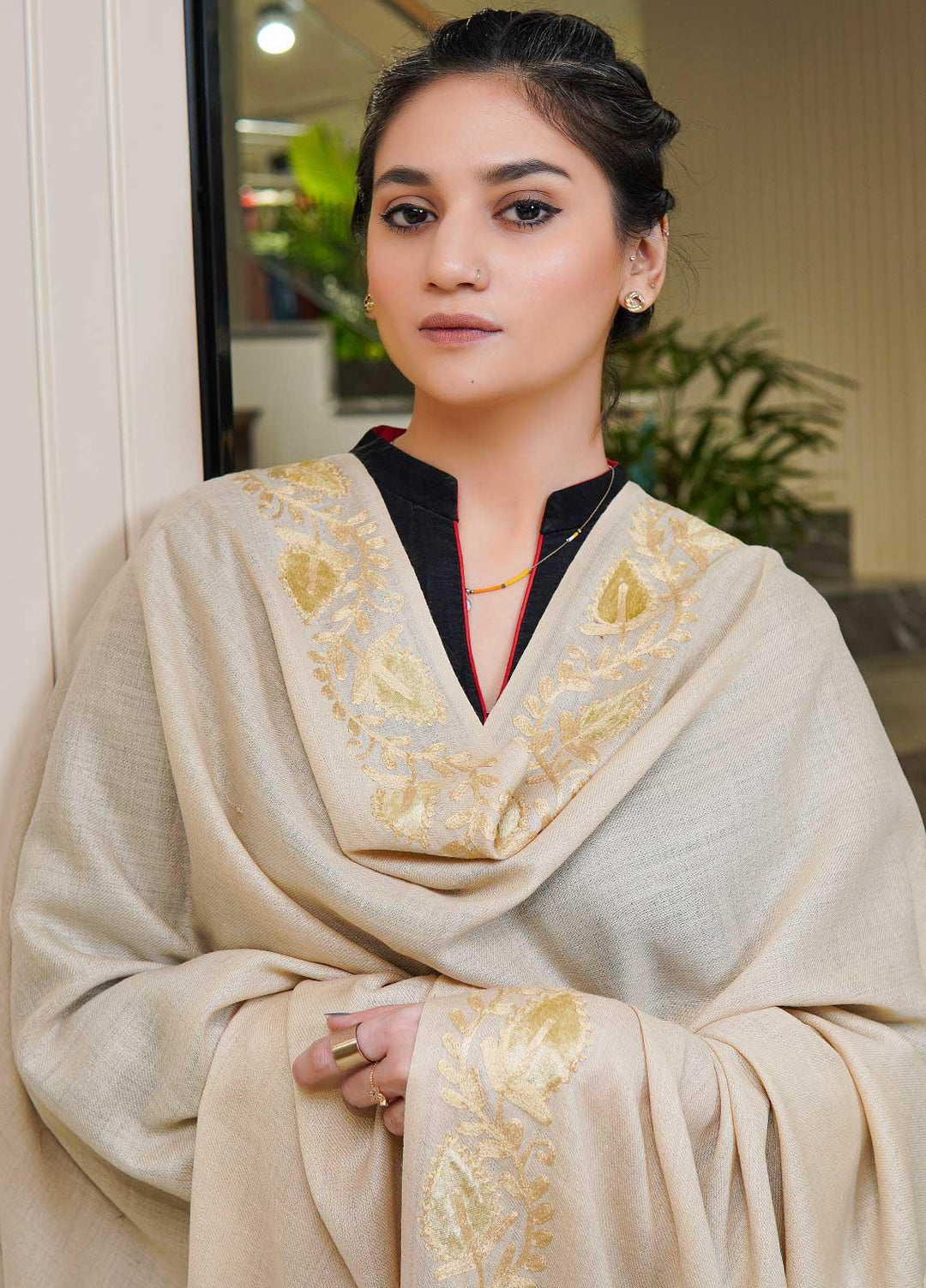 Sanaulla Exclusive Range Pashmina Shawls MAMA-12 Beige-1 - Pashmina Shawls