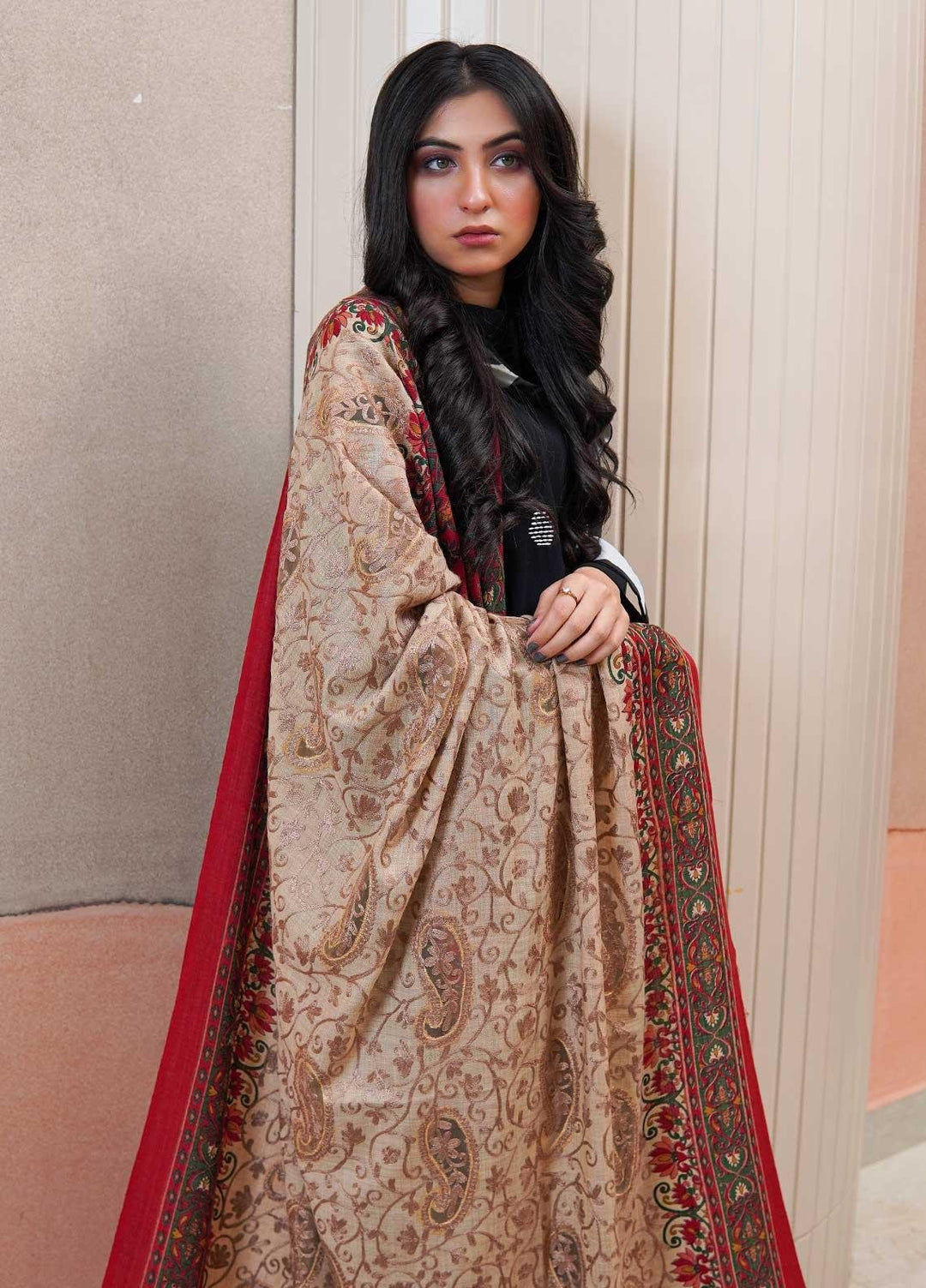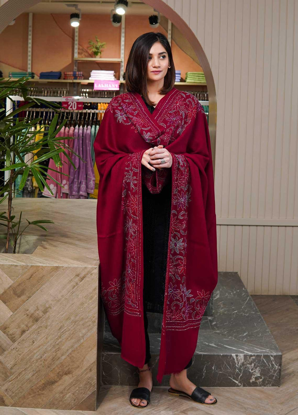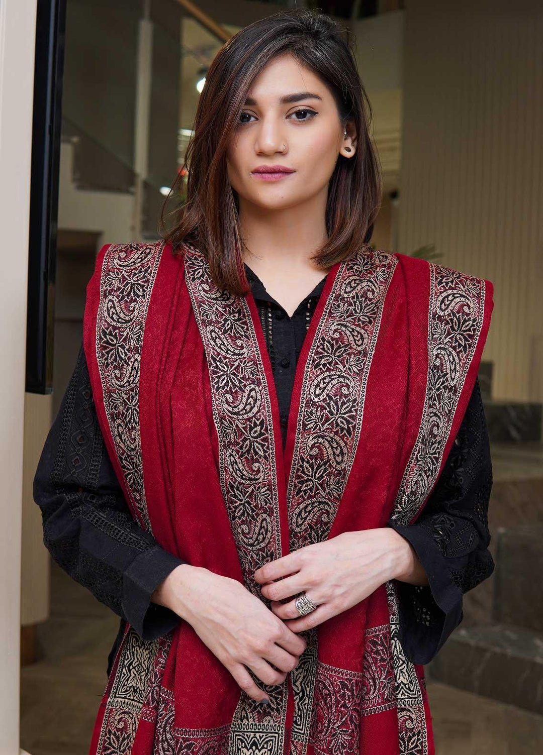 Sanaulla Exclusive Range Pashmina Shawls Shadow Emb Paala KPS-08 Red01 - Pashmina Shawls