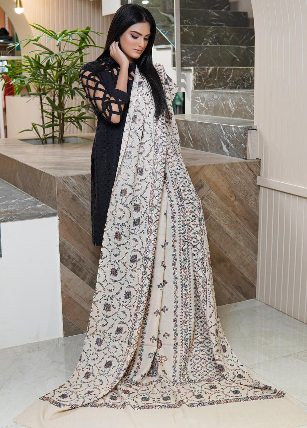 Sanaulla Exclusive Range Pashmina Shawls MAMA-26 Off White-2 - Pashmina Shawls