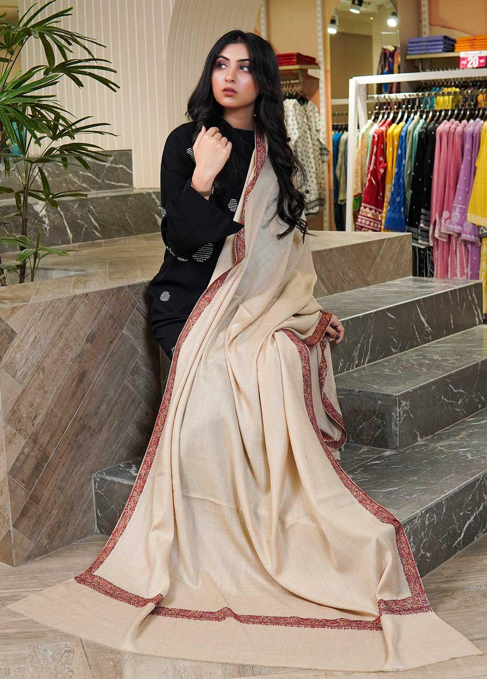 Sanaulla Exclusive Range Pashmina Shawls MAMA-09 Beige-9 - Pashmina Shawls