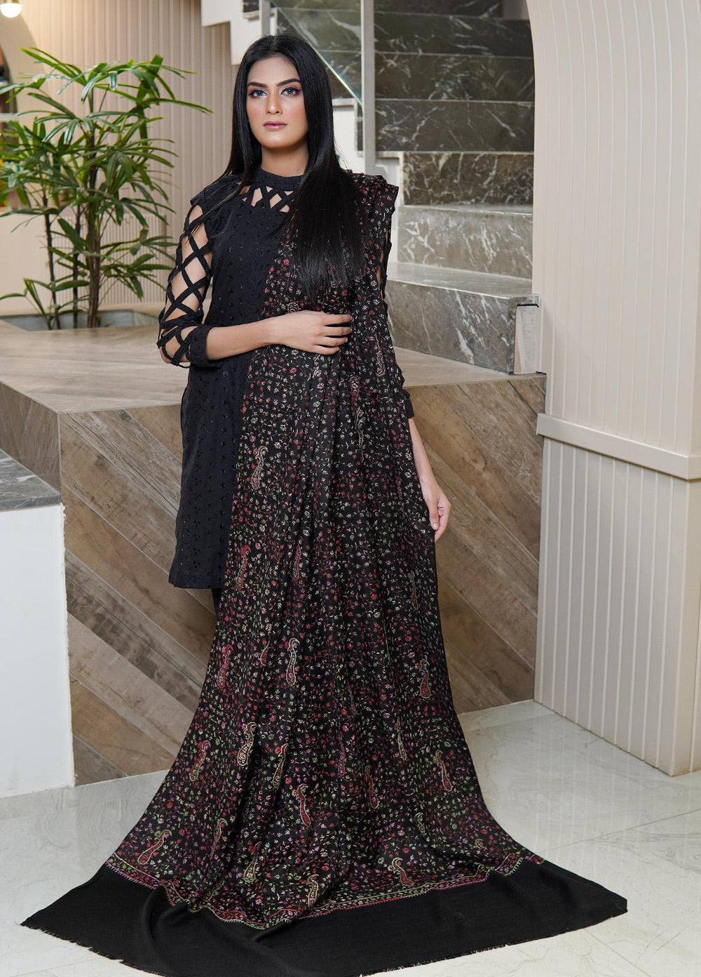 Sanaulla Exclusive Range Pashmina Shawls MAMA-12 Black-2 - Pashmina Shawls