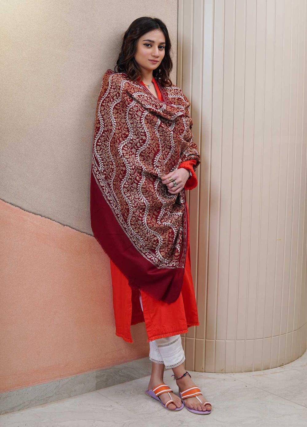 Sanaulla Exclusive Range Pashmina Shawls MAMA-35 Red-2 - Pashmina Shawls