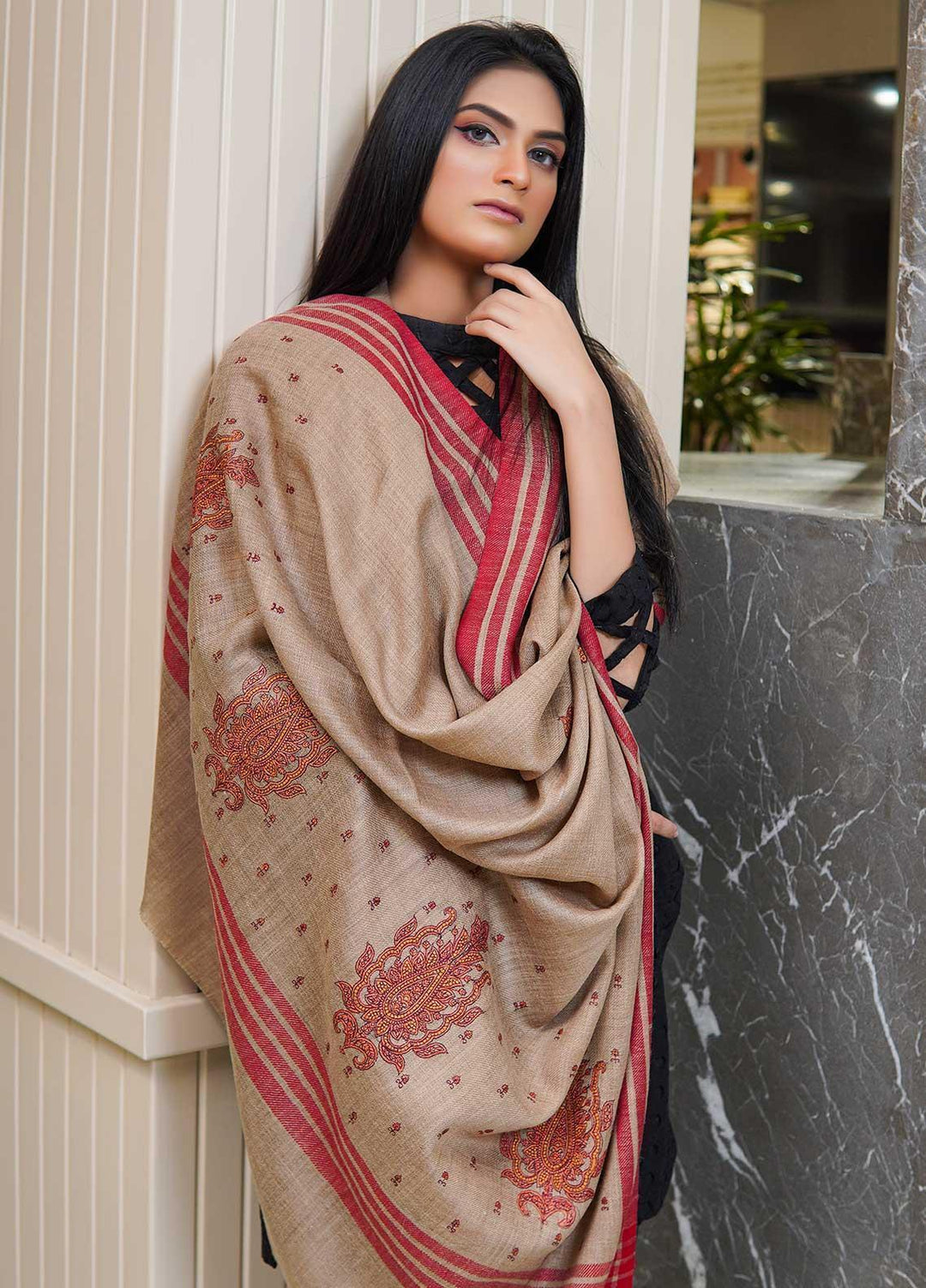 Sanaulla Exclusive Range Pashmina Shawls MAMA-26 Fawn-3 - Pashmina Shawls