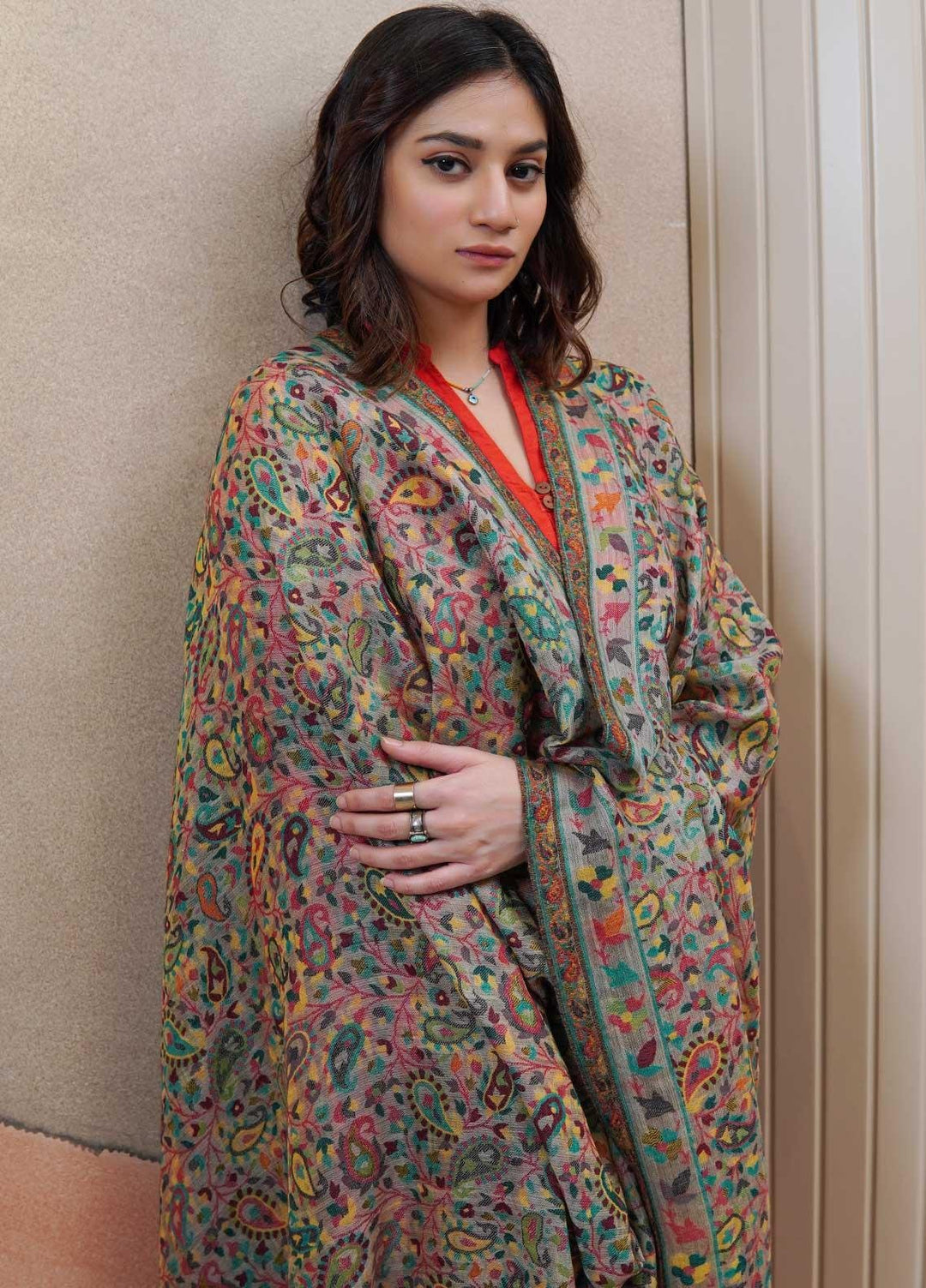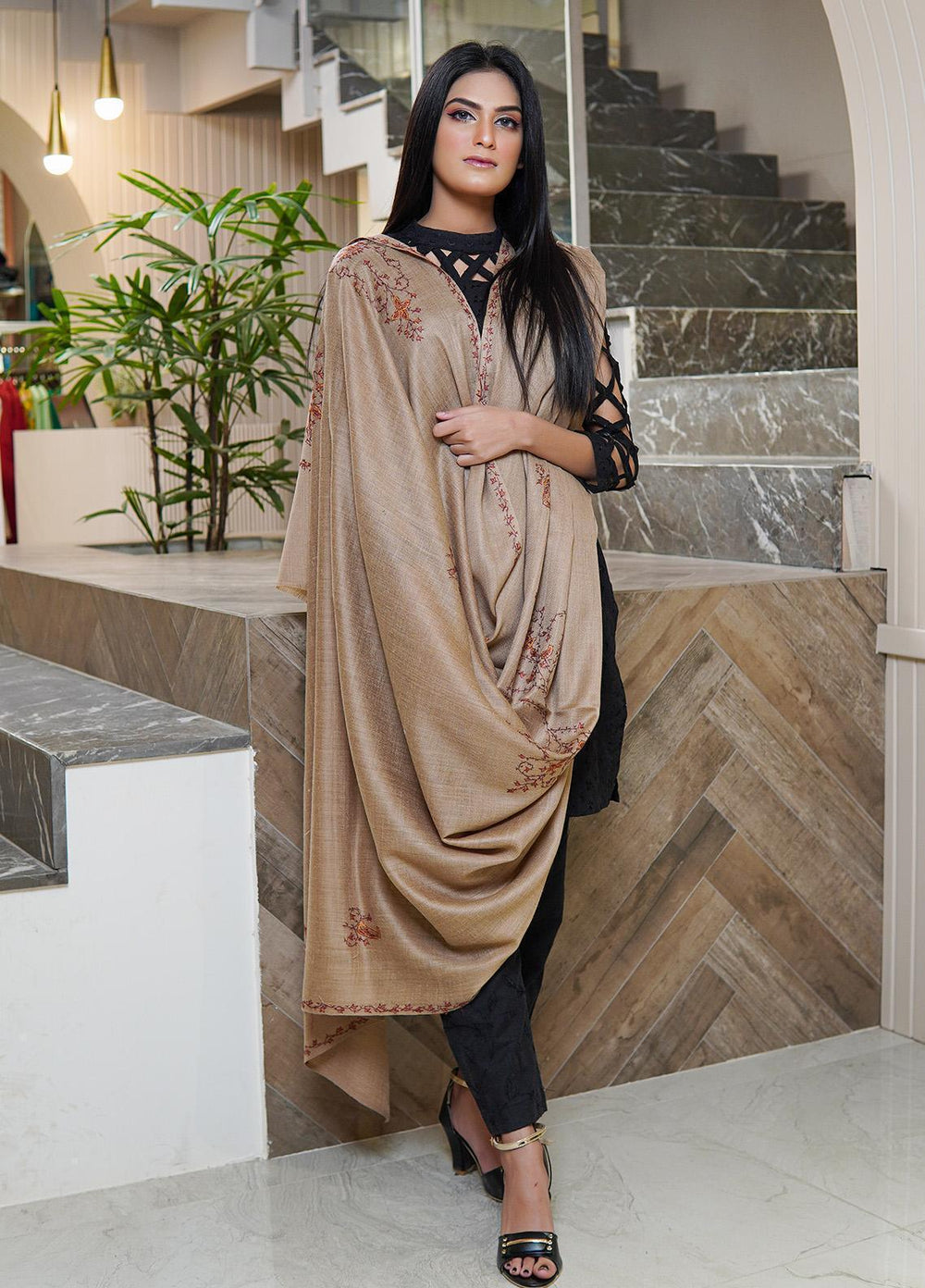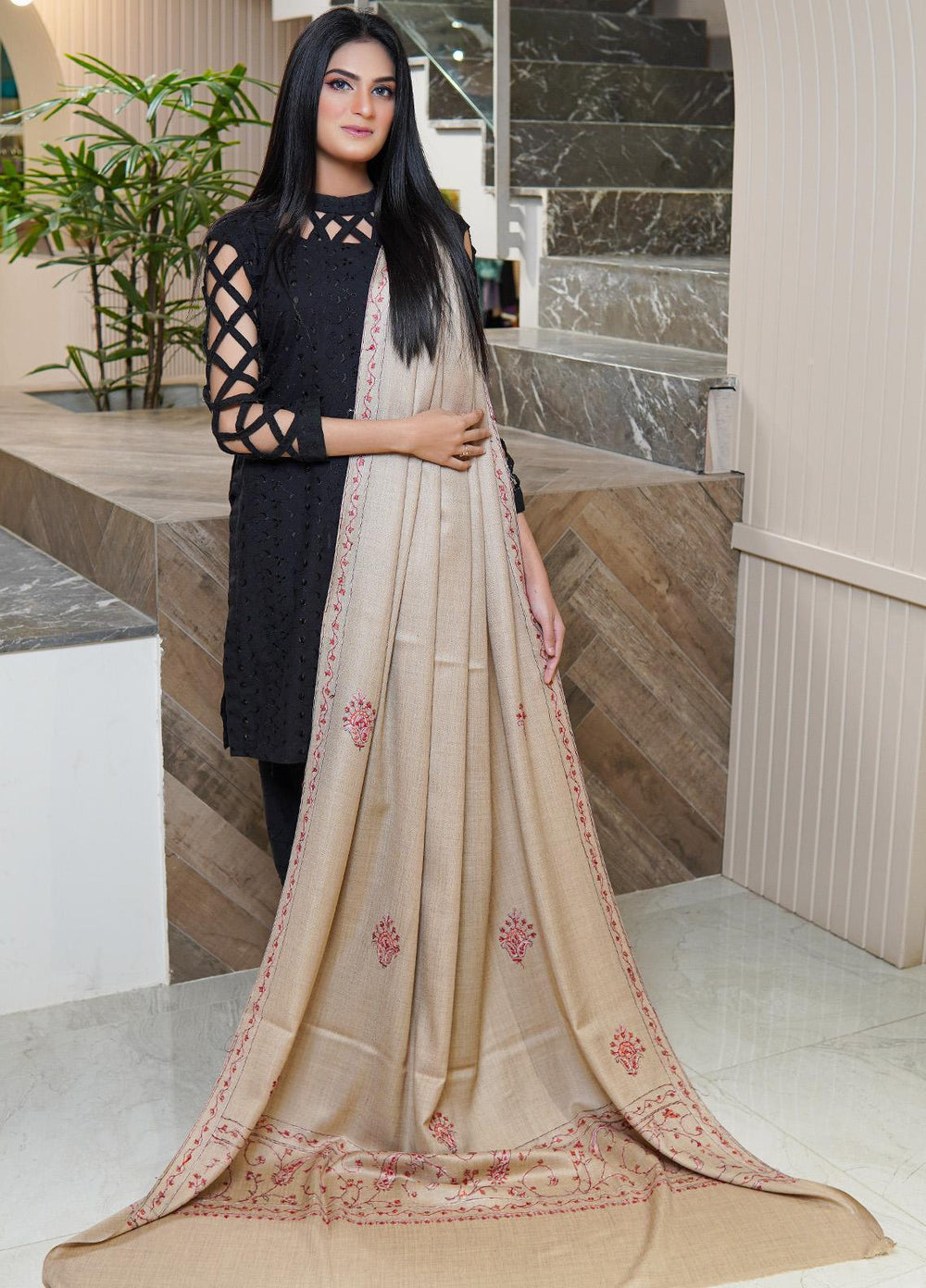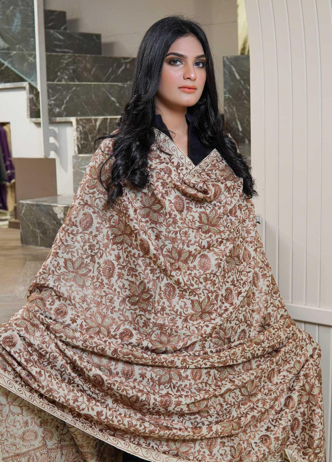 Sanaulla Exclusive Range Pashmina Shawls Multi Palla Emb DD KPS-45 Fawn01 - Pashmina Shawls