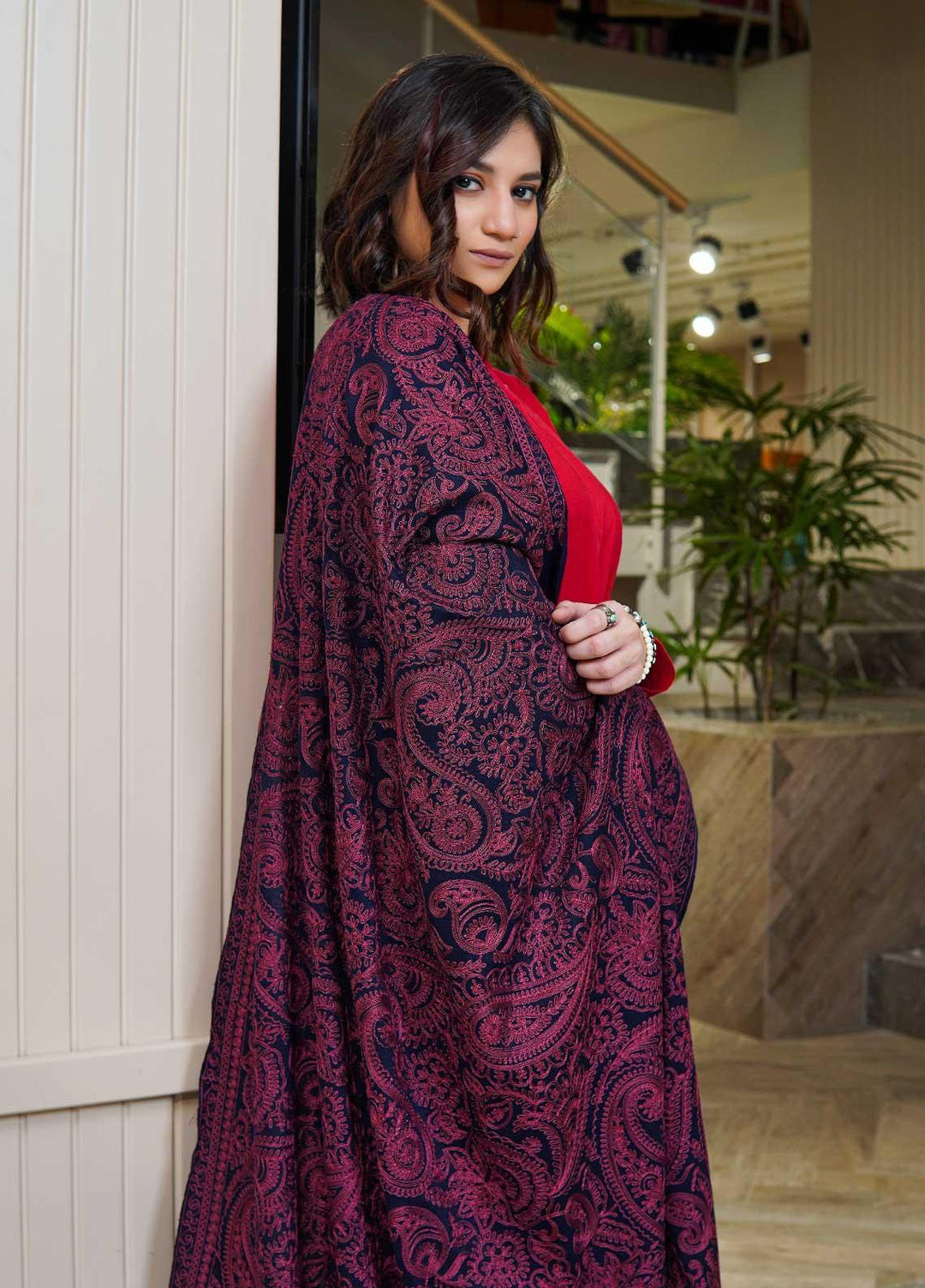 Sanaulla Exclusive Range Pashmina Shawls Zarri Palla C KPS-54 Mehroon02 - Pashmina Shawls