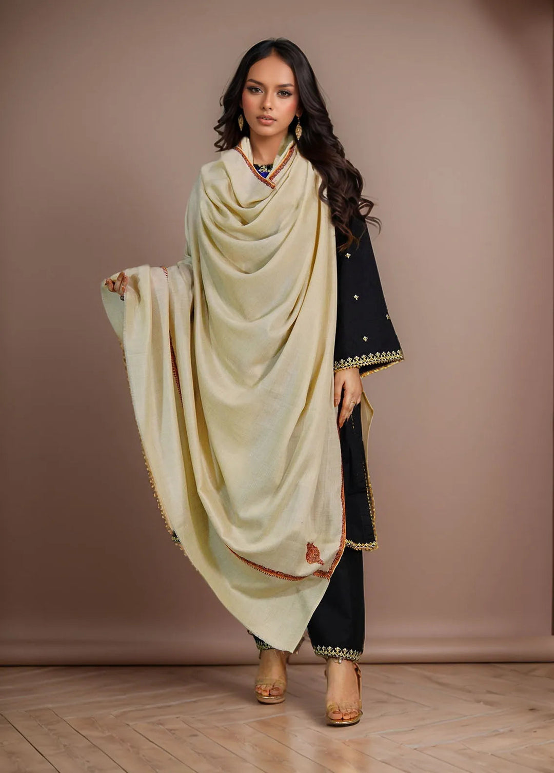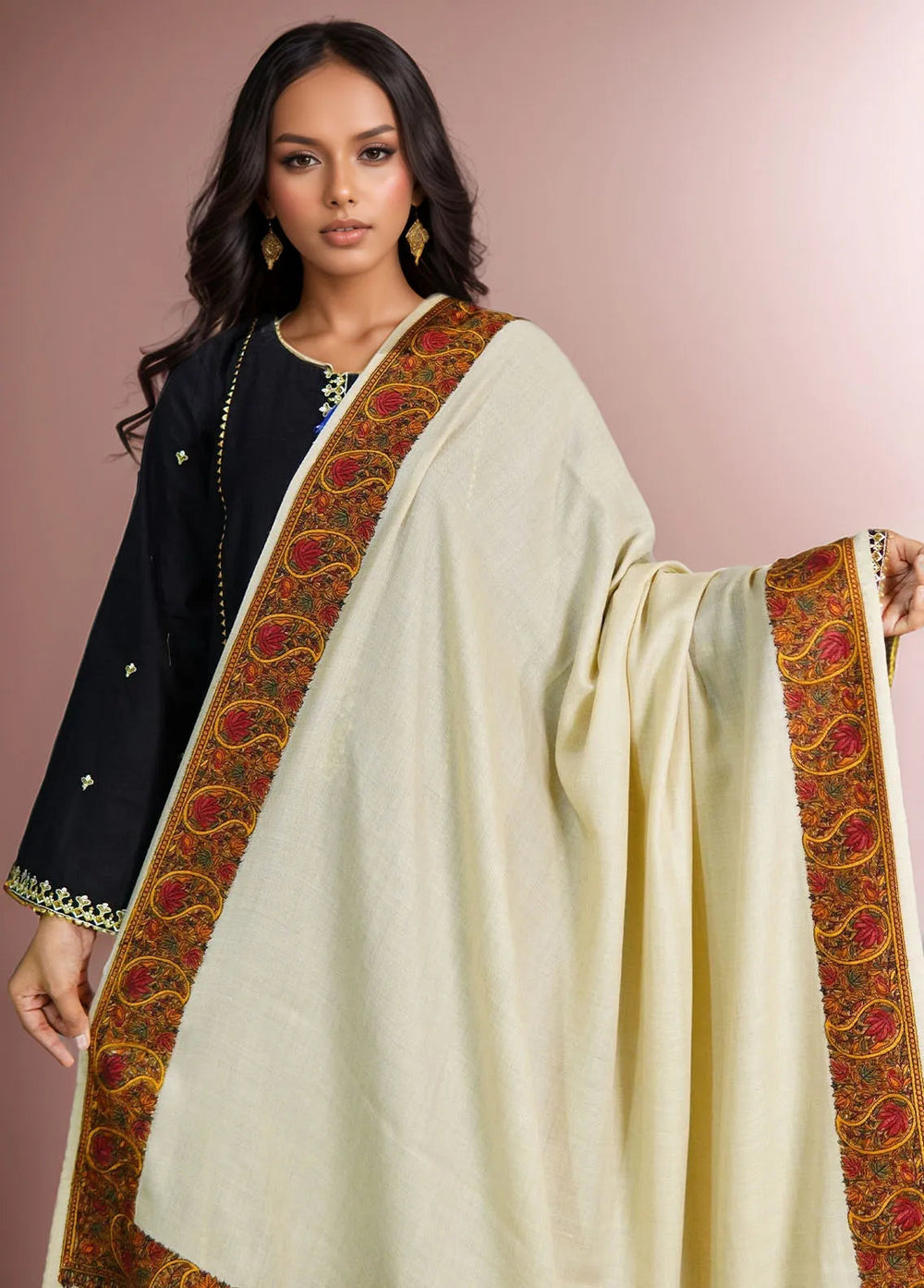 Sanaulla Exclusive Range Pashmina Shawl KPS D-41 Cream - Winter Collection