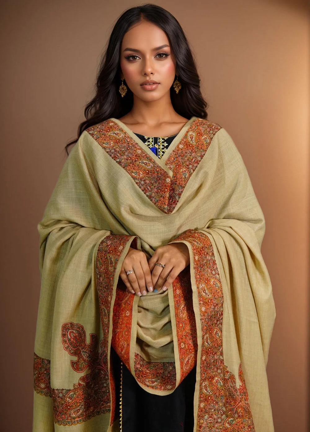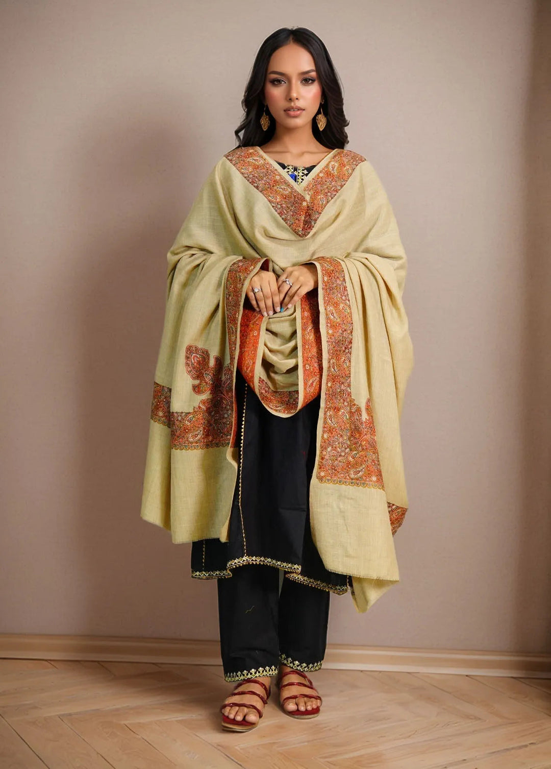 Sanaulla Exclusive Range Pashmina Shawl MAMA D-6 Fawn 2 - Winter Collection