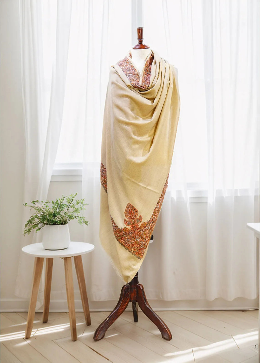 Sanaulla Exclusive Range Pashmina Shawl KPS D-98 Beige - Winter Collection
