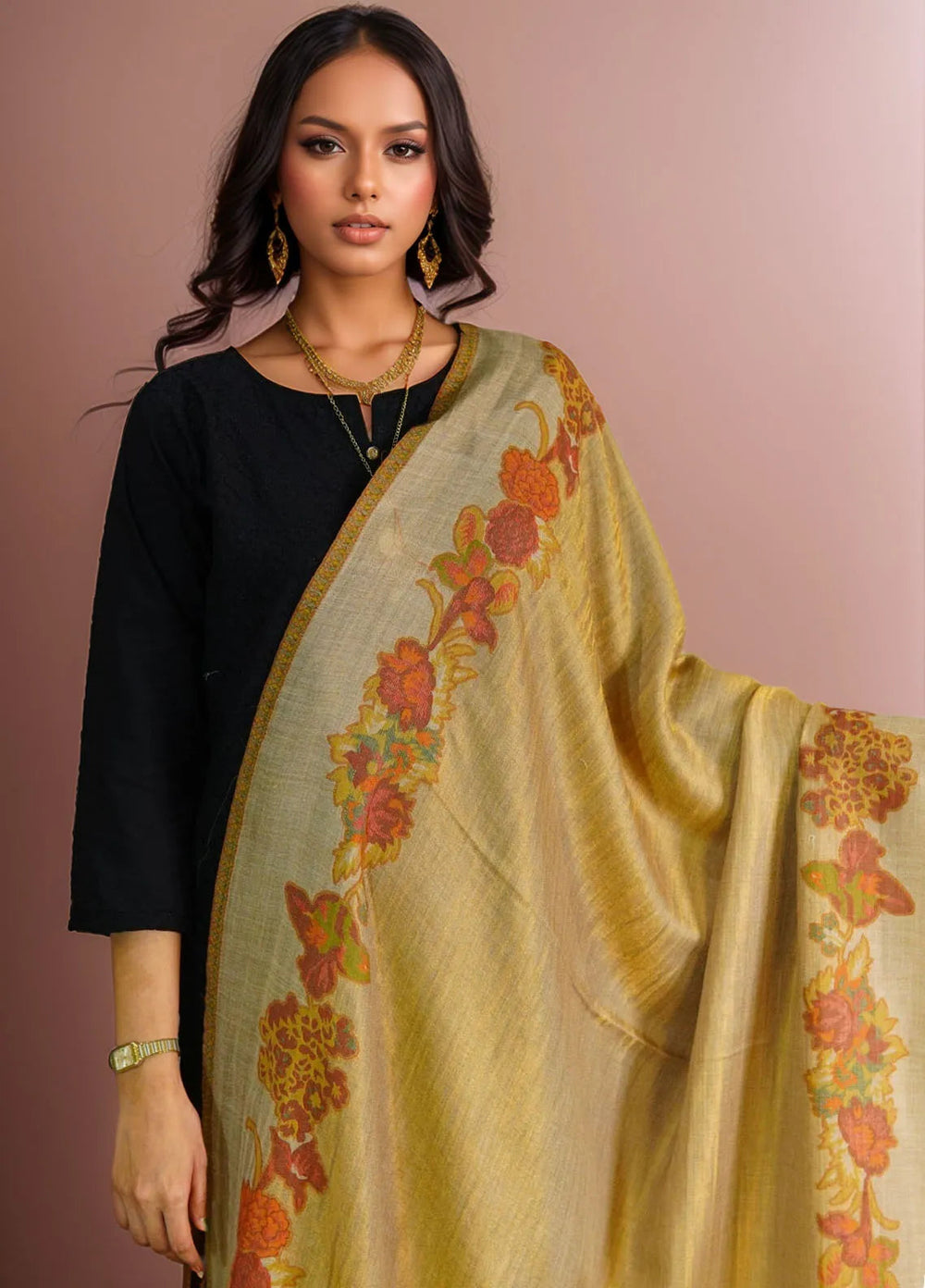 Sanaulla Exclusive Range Pashmina Shawl D-46 Yellow - Winter Collection