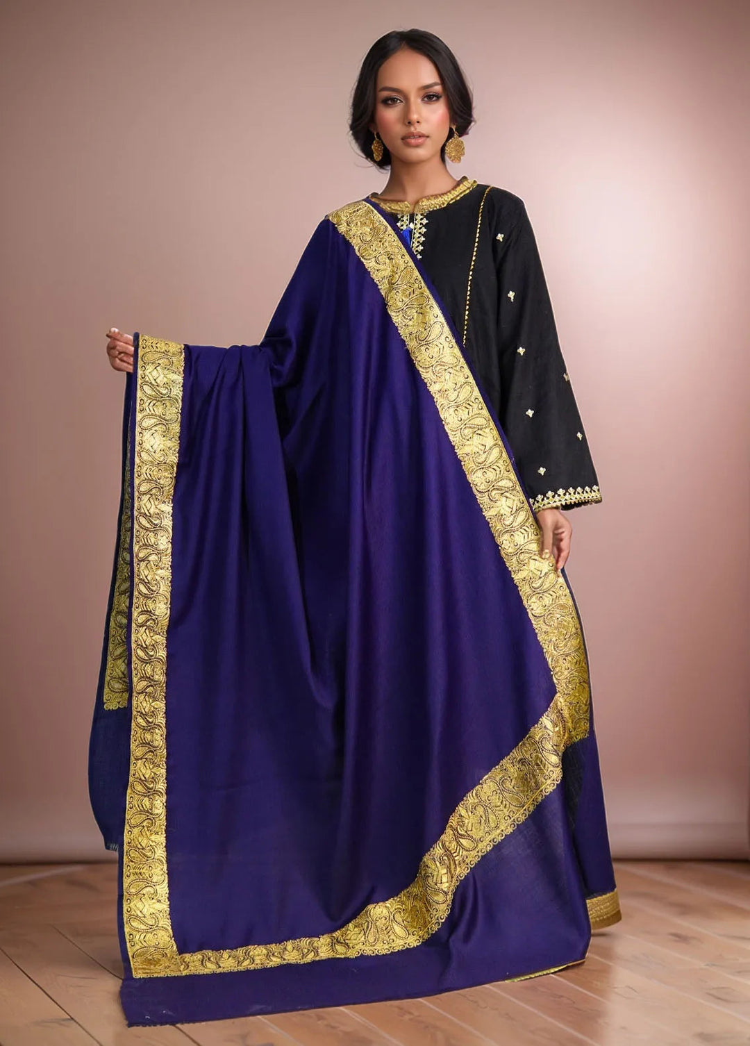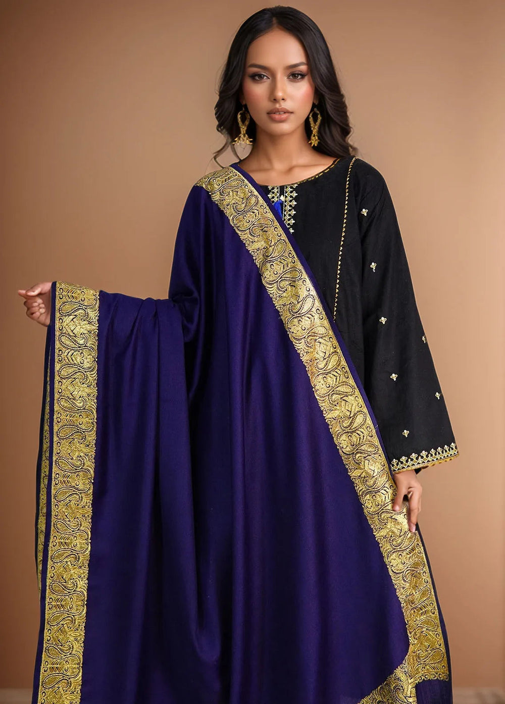Sanaulla Exclusive Range Pashmina Shawl D-16 Navy Blue - Winter Collection