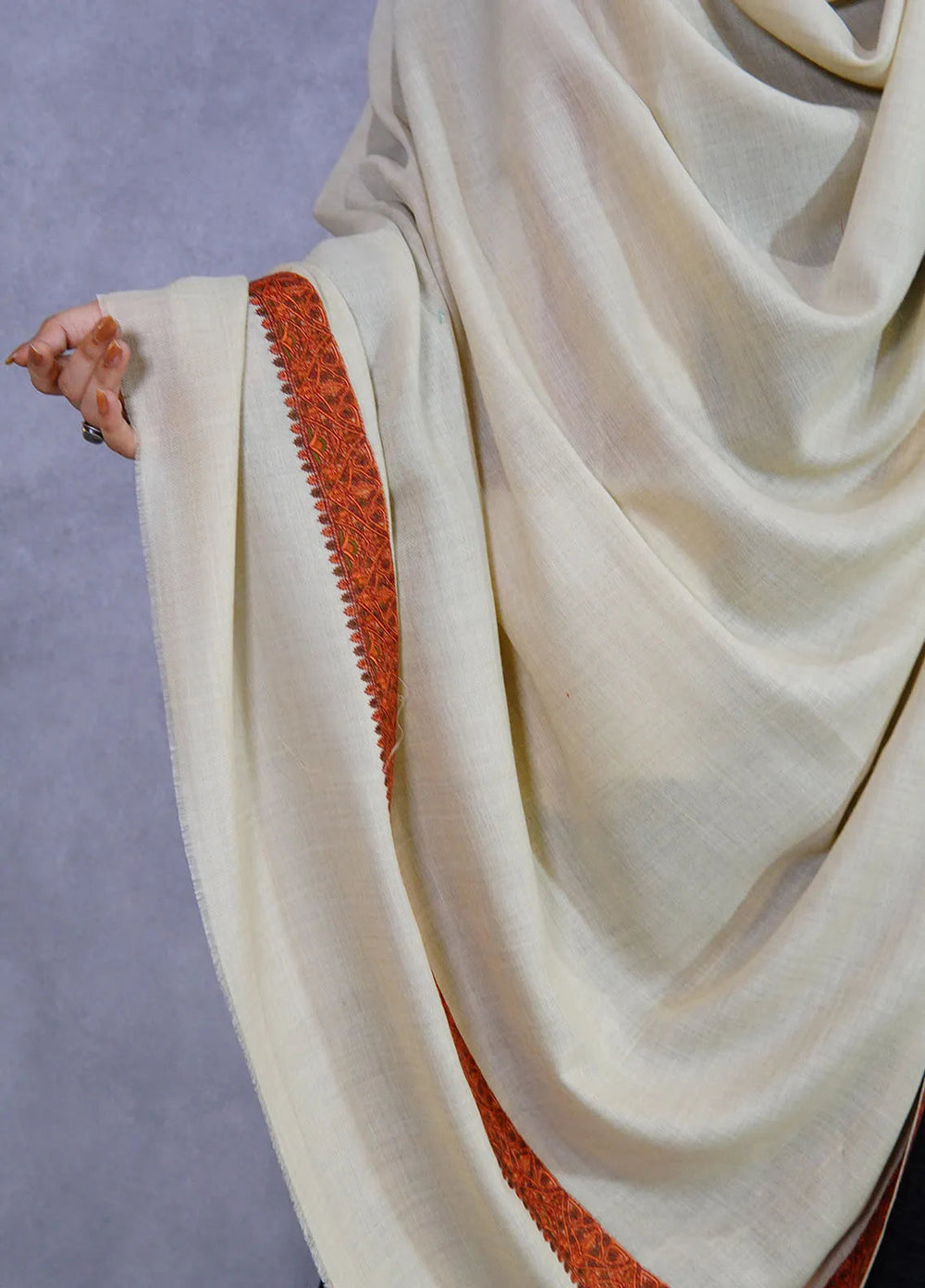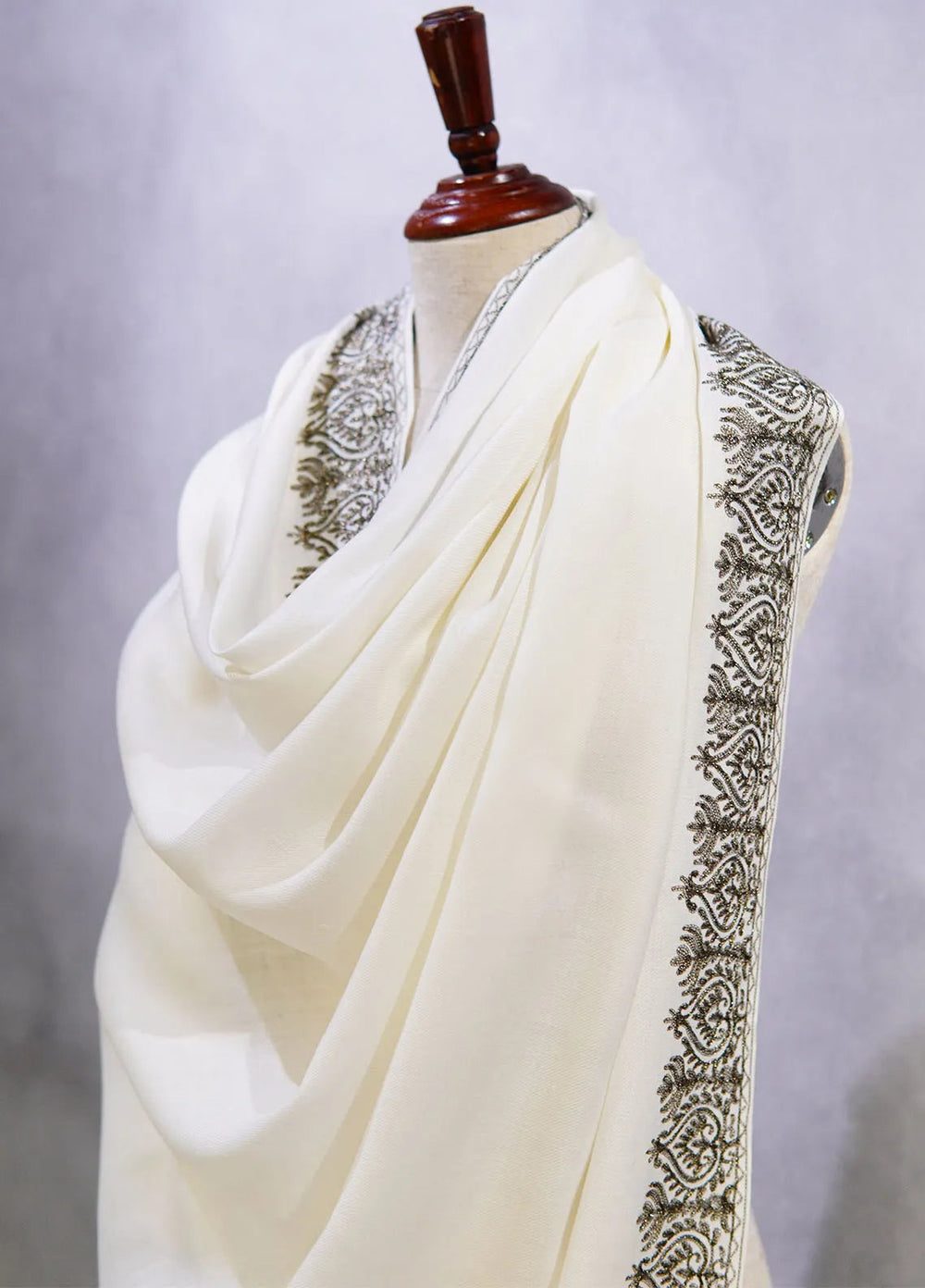 Sanaulla Exclusive Range Pashmina Shawl D-63 Off White - Winter Collection