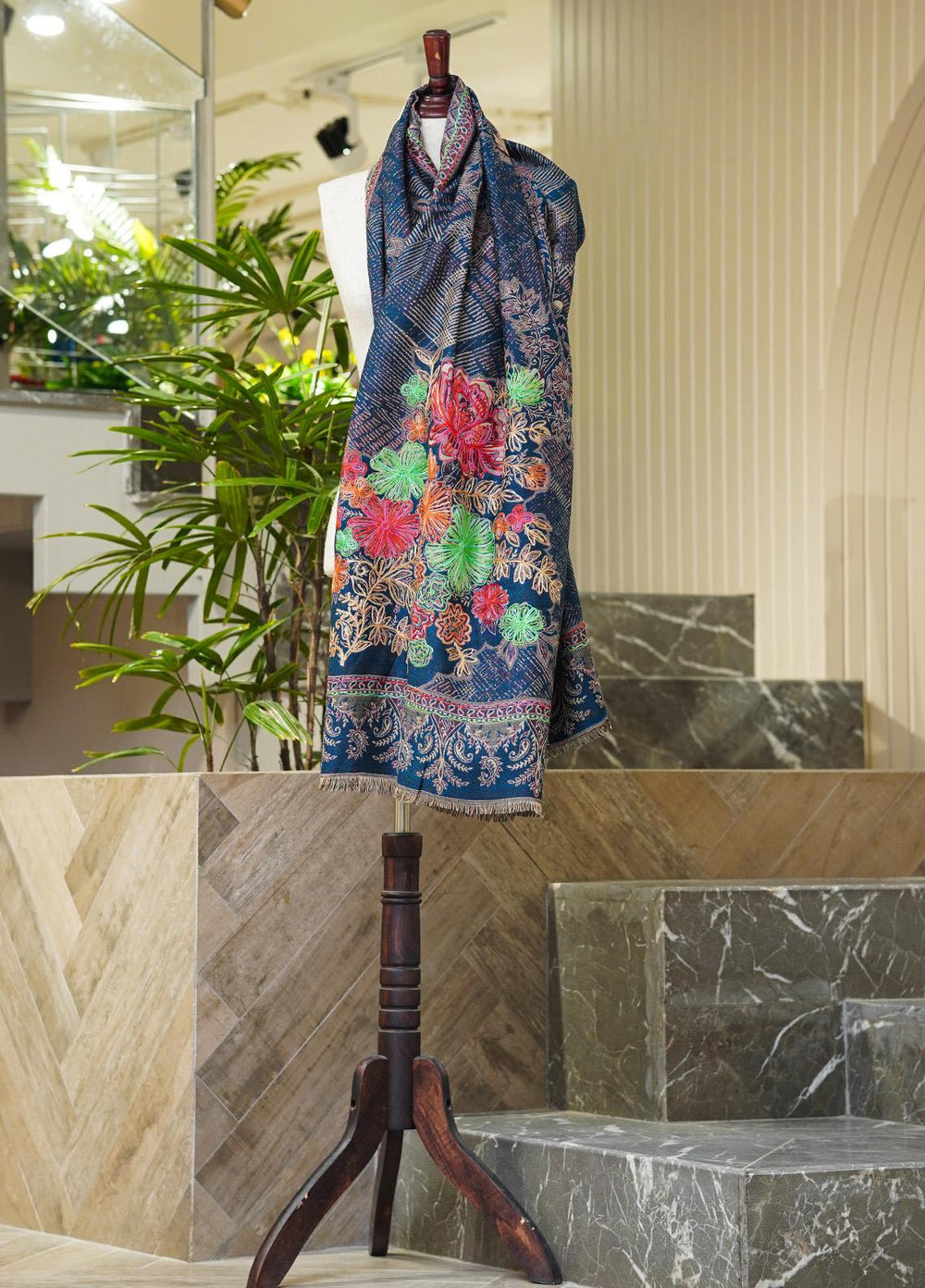 Sanaulla Exclusive Range Pashmina Shawls MIR-37 Blue - Pashmina Shawls