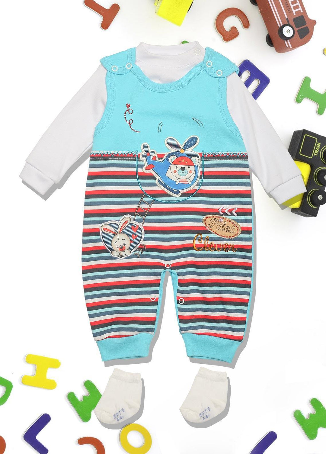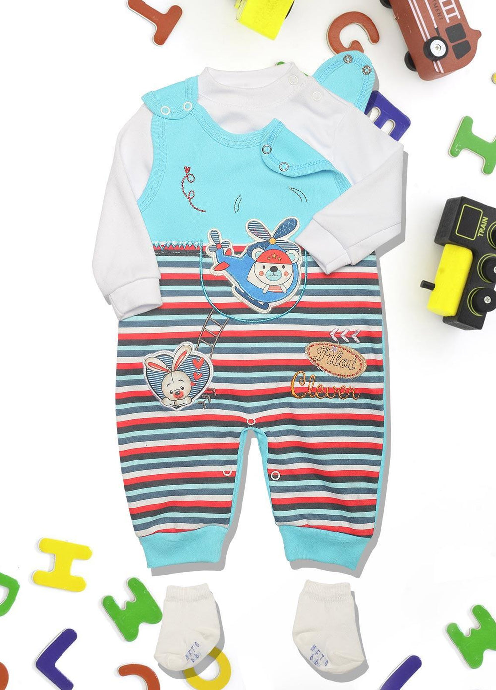 Sanaulla Exclusive Range Fancy Kids Romper - 8114 Ferozi