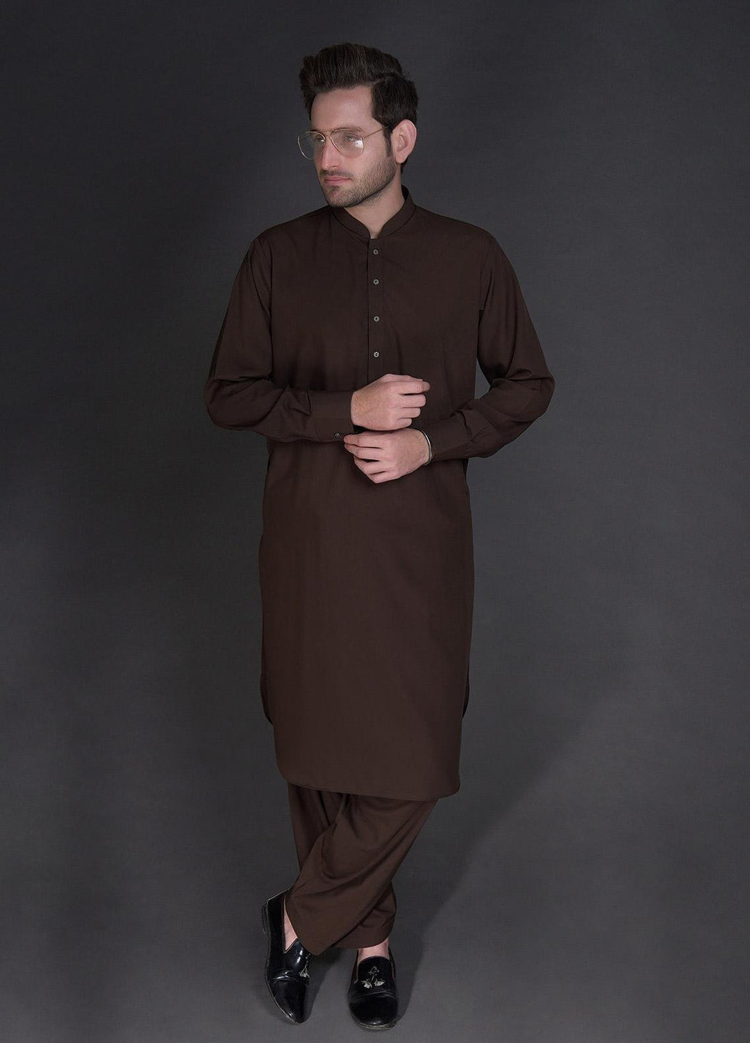 Sanaulla Exclusive Range Wash N Wear Formal Kameez Shalwar for Men - C-9165 Brown
