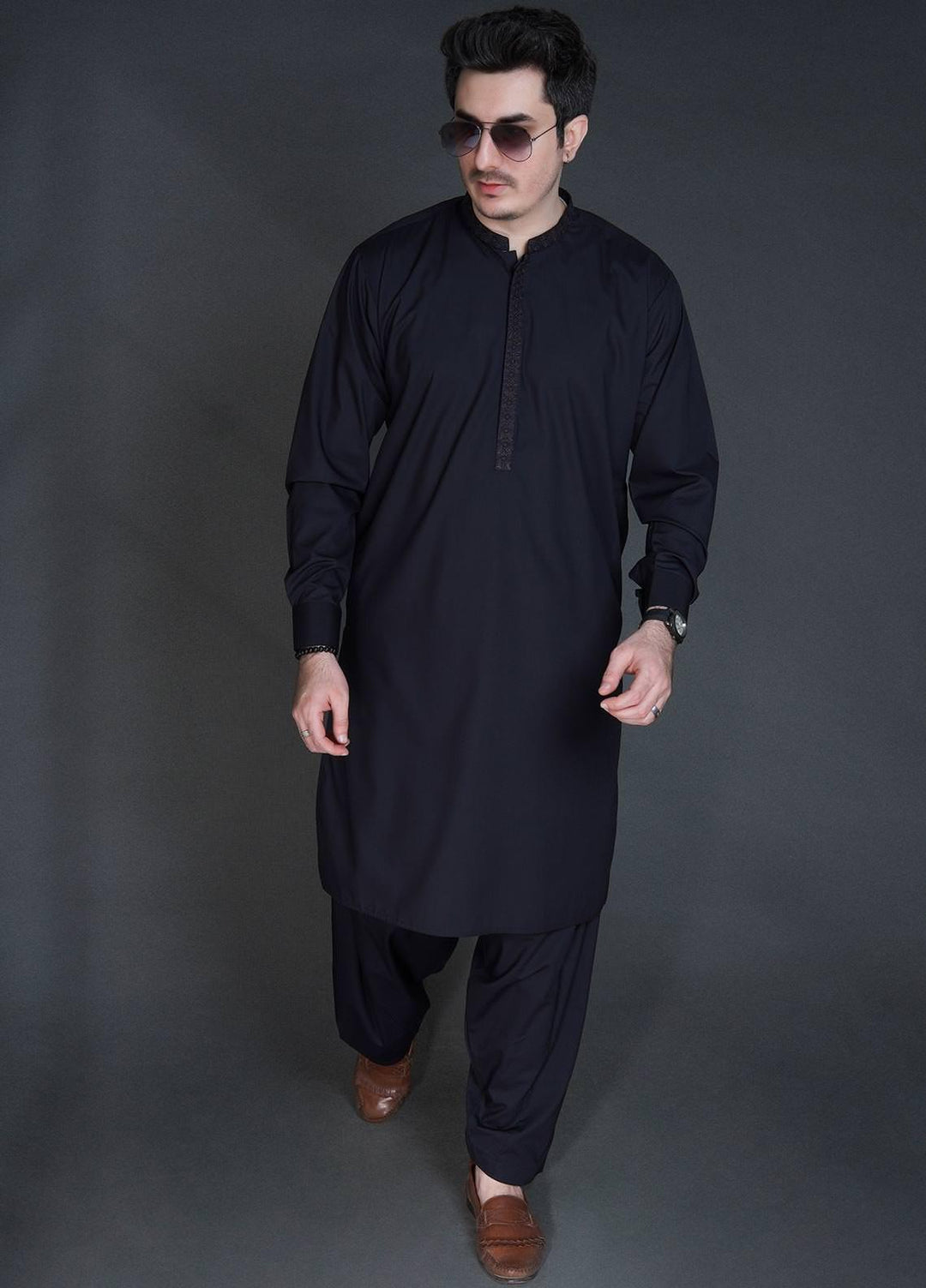 Sanaulla Exclusive Range Wash N Wear Formal Men Kameez Shalwar - C-9294 Black