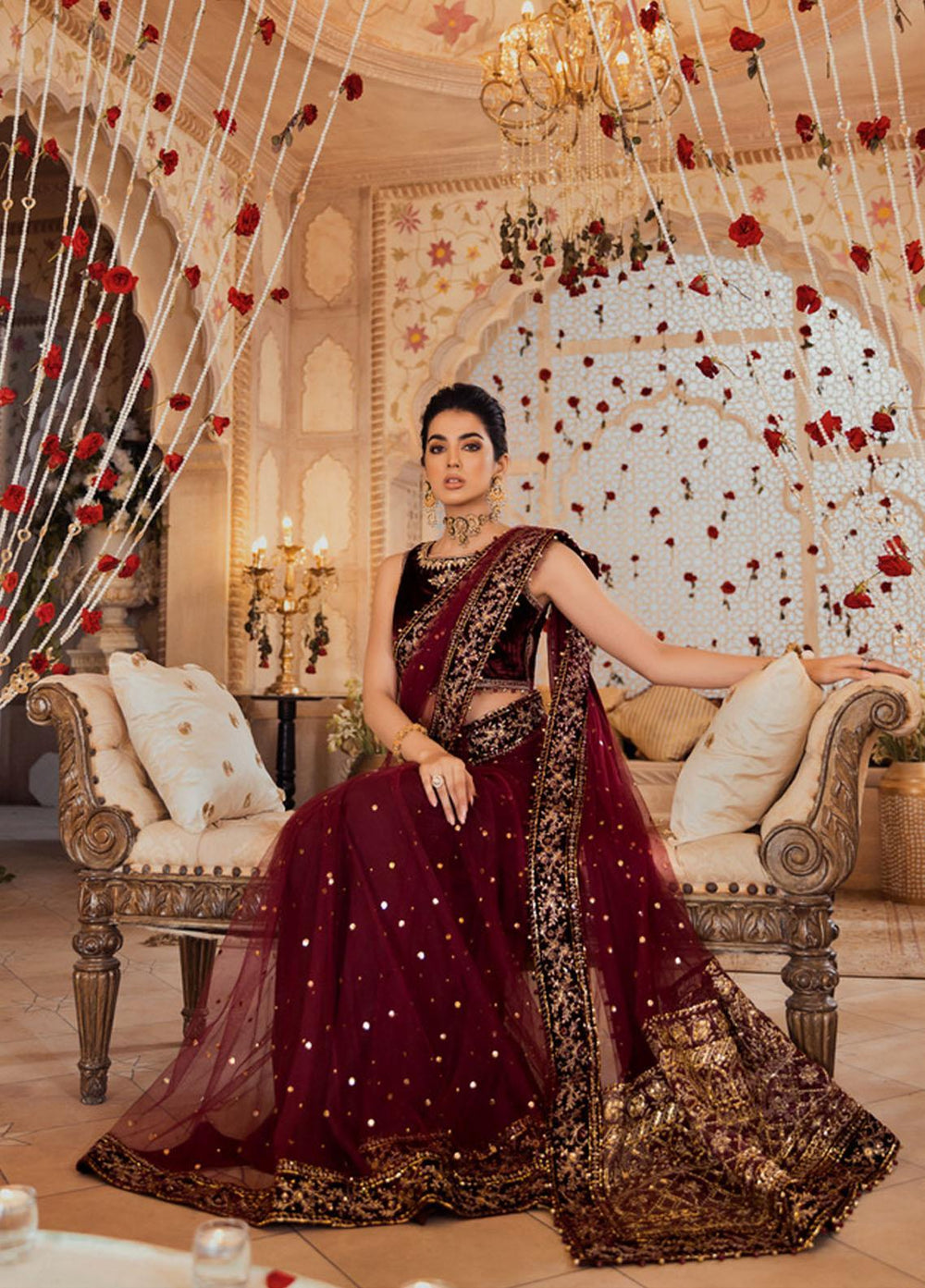 Noor by Saadia Asad Embroidered Velvet Saree Unstitched 3 Piece SA21WD D4 - Wedding Collection
