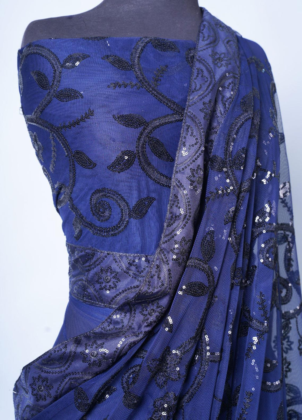 Vibgyor Fashion Embroidered Net Unstitched Saree S6-23U Flora Blue - Festive Collection