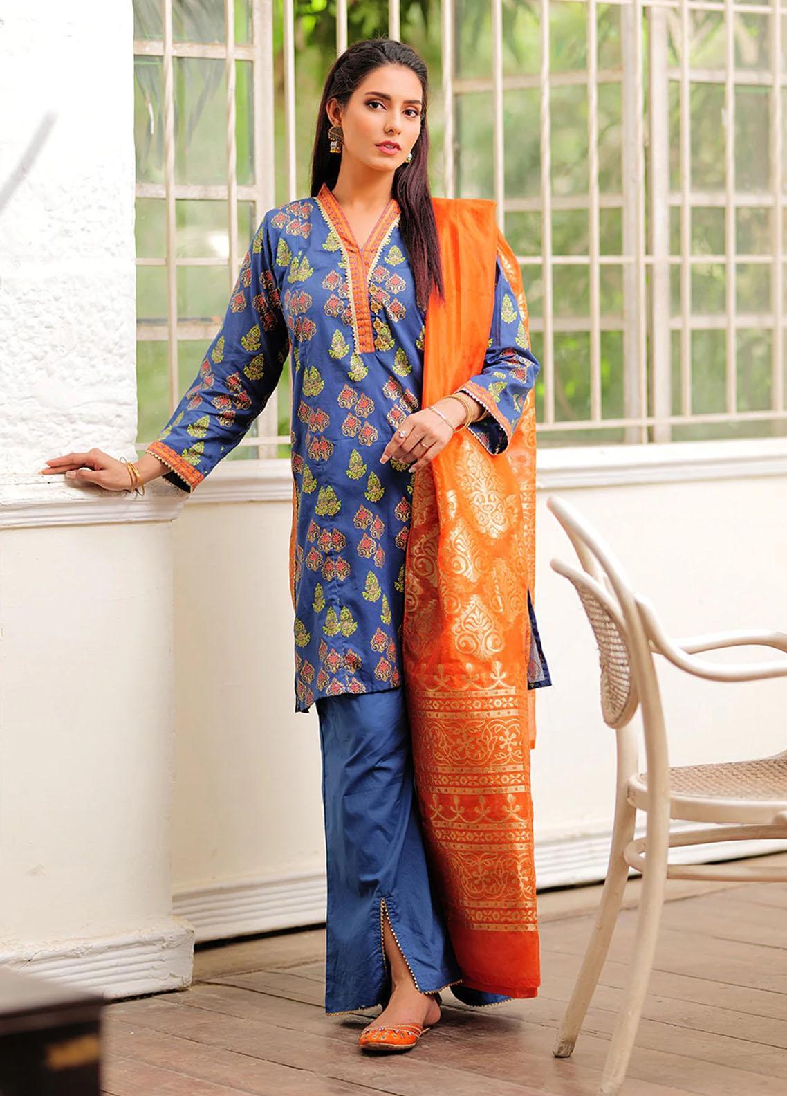 Senorita Cotton Printed 3 Piece for Ladies - LBD-2018-BLU/MCL