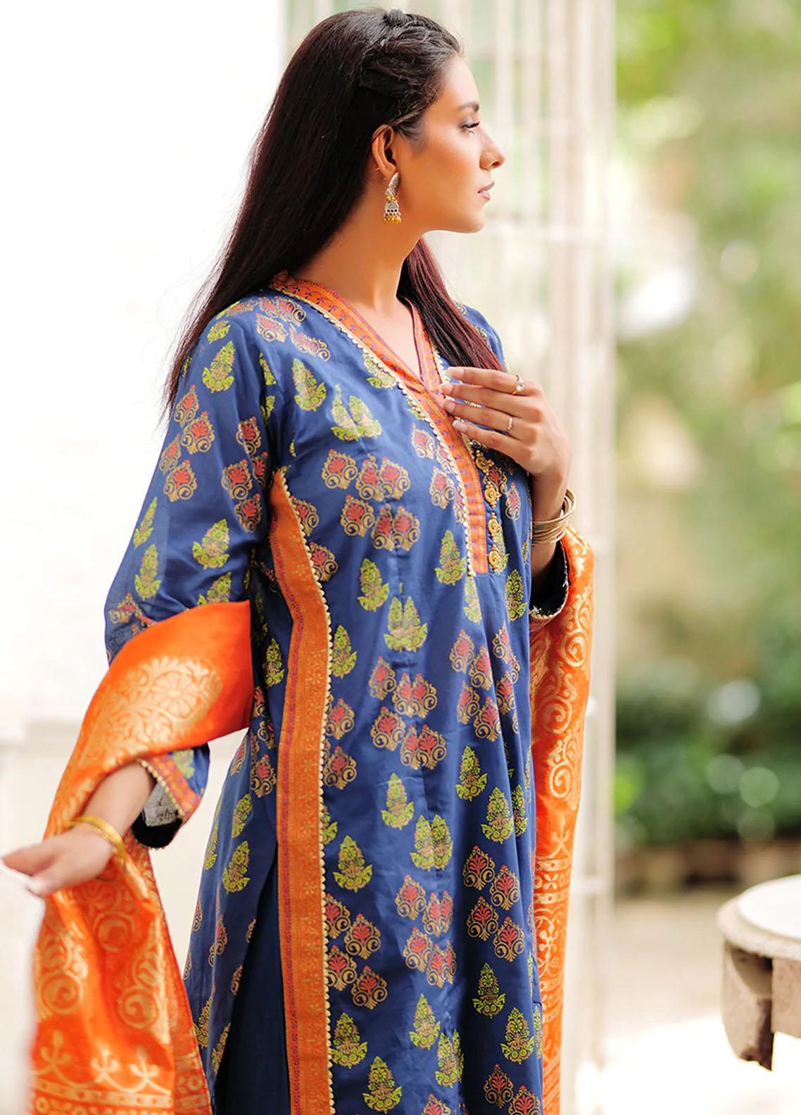 Casual 3 Piece Suit | Cotton Gold Printed & Paist Lawn | Blue & Multicolor | LBD-02018
