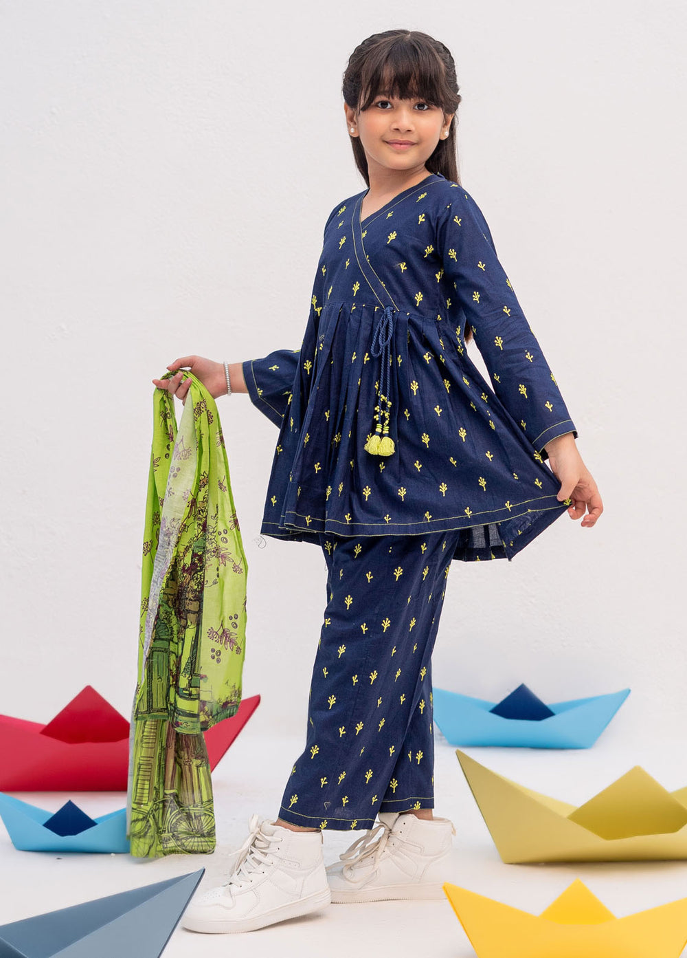Senorita Cotton Casual 3 Piece Suit for Girls - KAD-02544-BLU/MCL