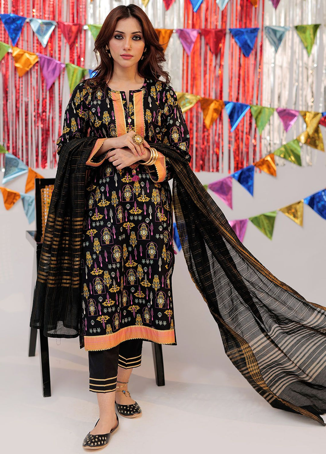 Senorita Cotton Casual 3 Piece Suit for Girls - LBD-02532-BLK/GLD
