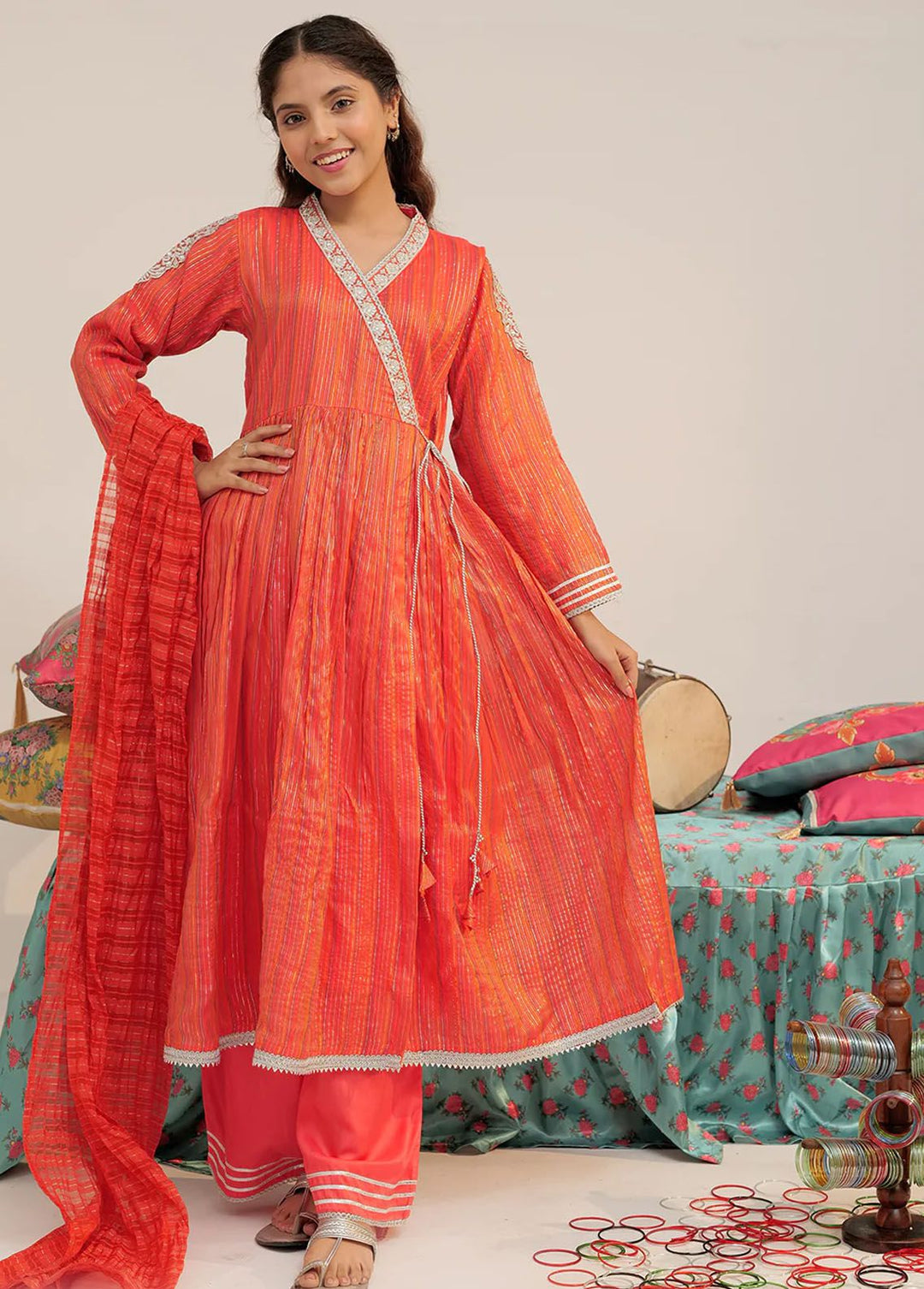 Senorita Jamawar Casual 3 Piece Suit for Girls - KDD-02407-RED/GLD