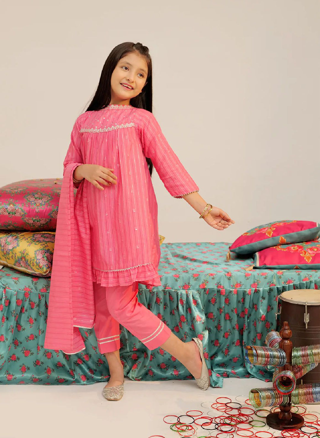 Senorita Cotton Casual 3 Piece Suit for Girls - GBD-02225-PNK/SLR
