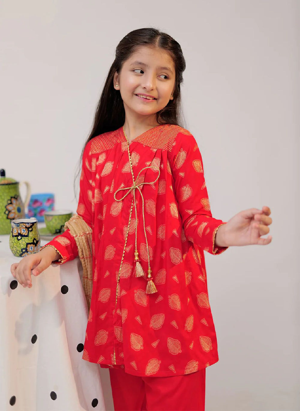 Senorita Cotton Casual 3 Piece Suit for Girls - GBD-02530-RED/GLD