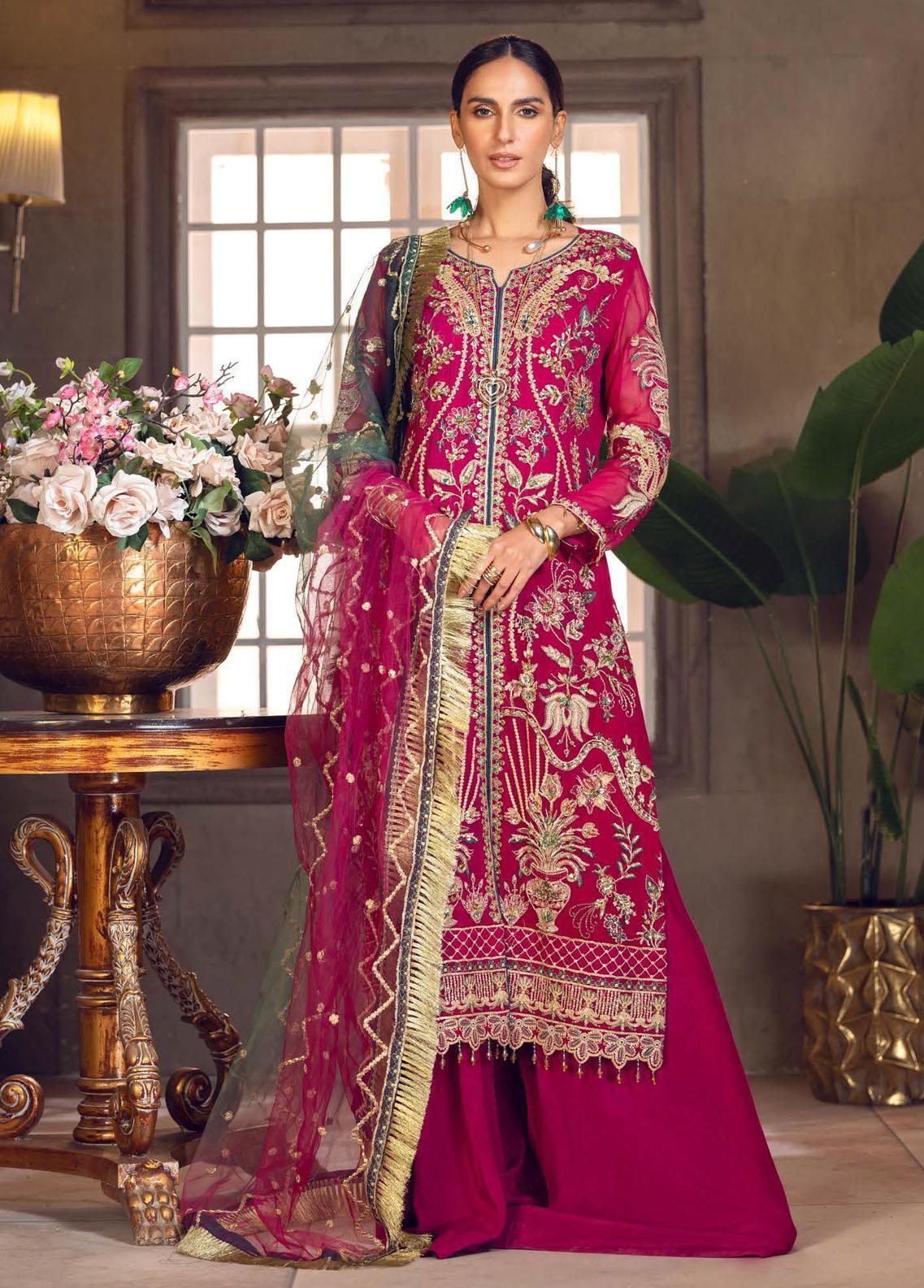 Le Festa By Emaan Adeel Embroidered Chiffon Suits Unstitched 3 Piece EA23-P6 LF-701 - Premium Collection