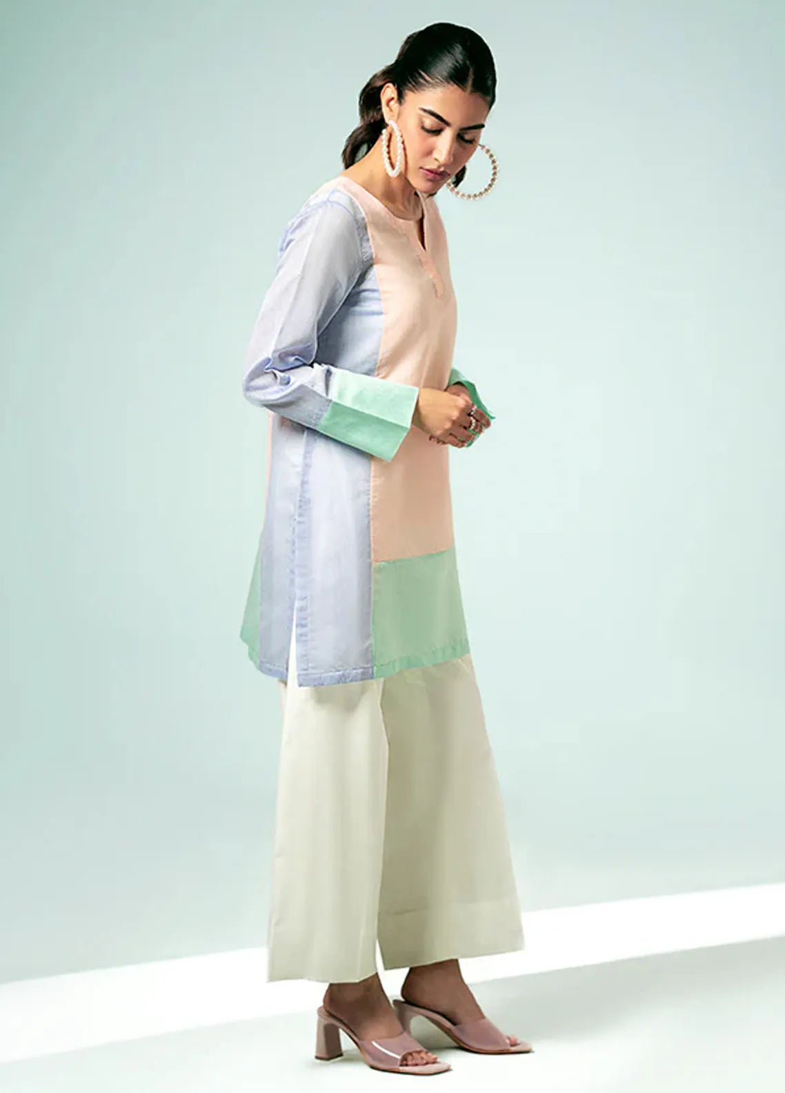 Fozia Khalid Pret Casual Silk Kurti Pastel Contrast Tunic