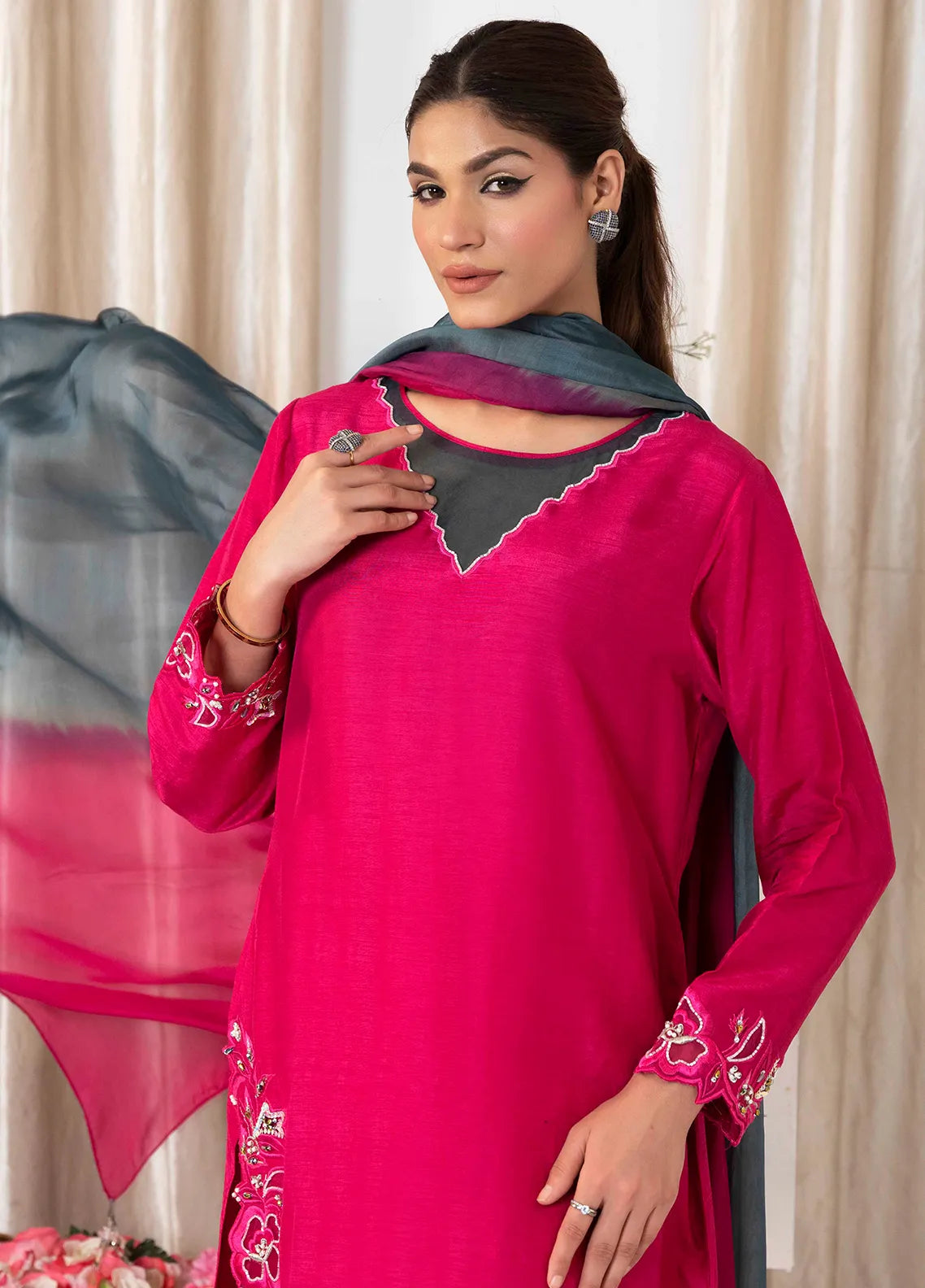 Embroidered Pret Raw Silk 3 Piece Suit