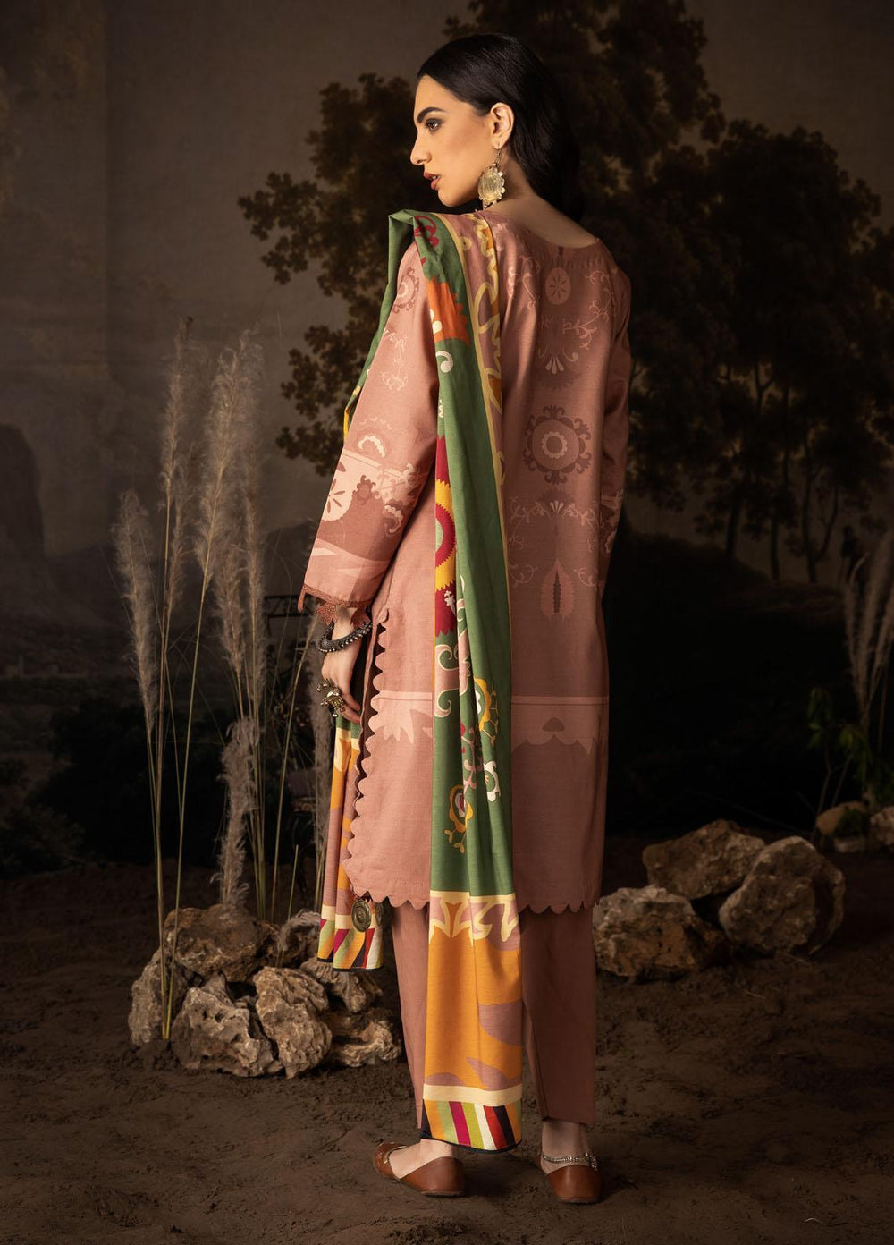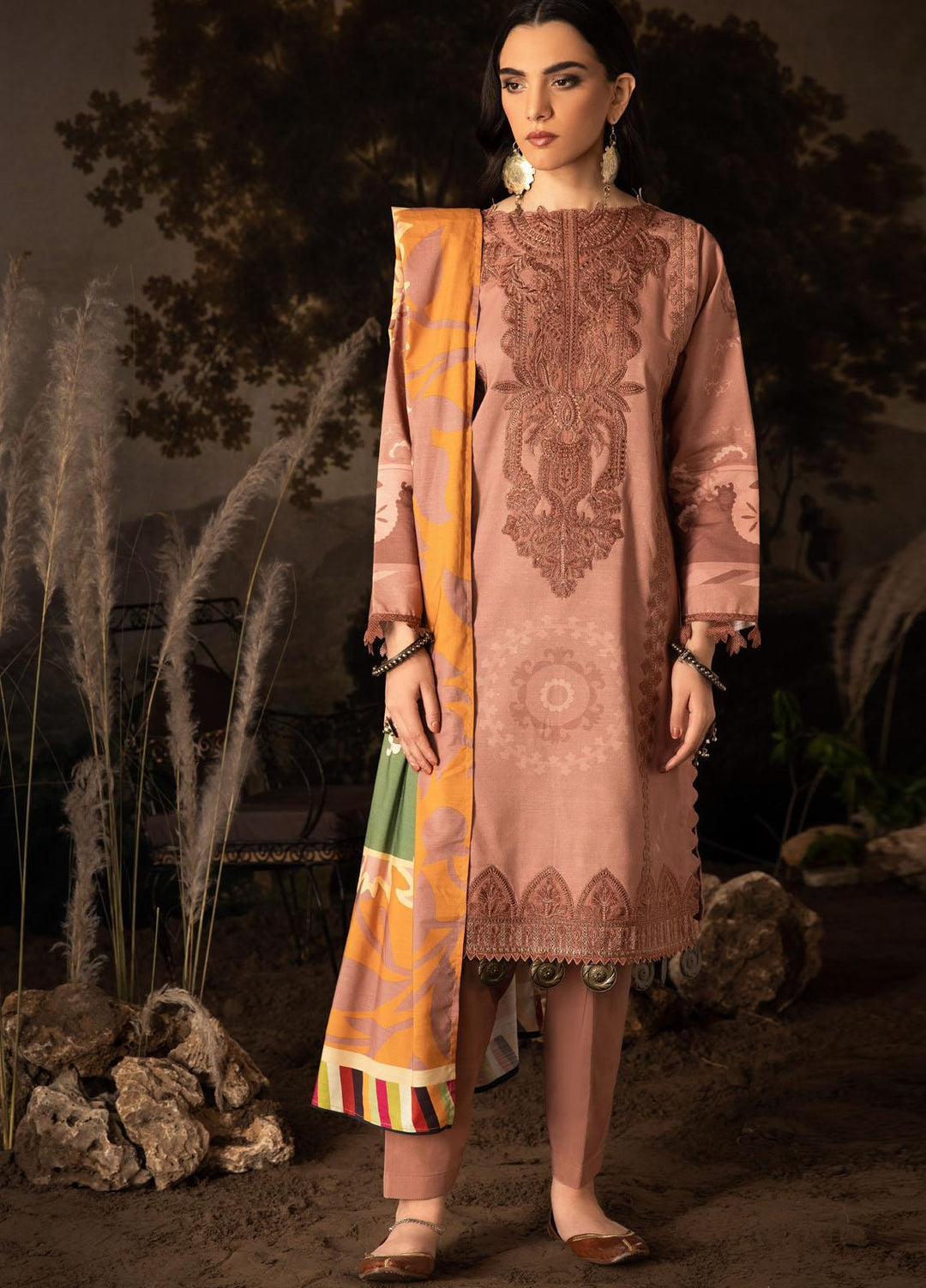 Qalamkar Embroidered Leather Peach Suits Unstitched 3 Piece QLM23LW SC-04 Allesia - Luxury Winter Collection