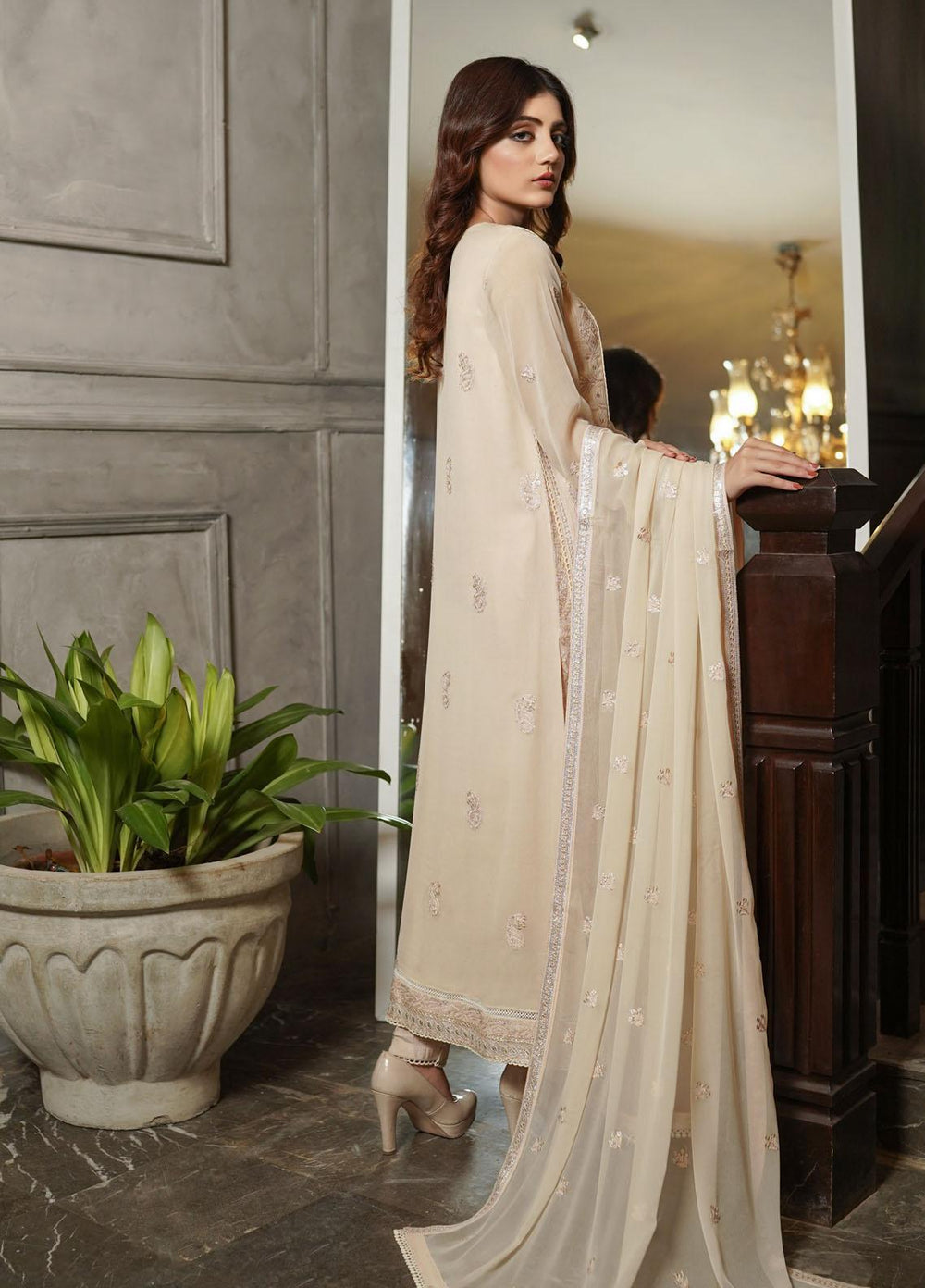 Jannan By Riaz Arts Embroidered Chiffon Suits Unstitched 3 Piece RA23WD JL-33 - Wedding Collection
