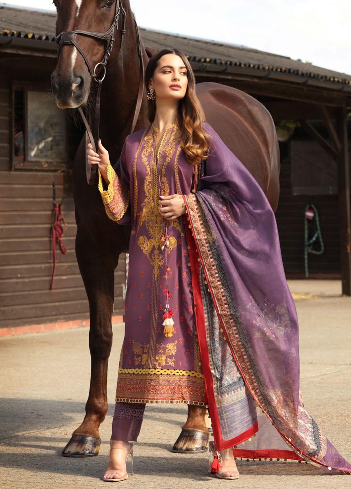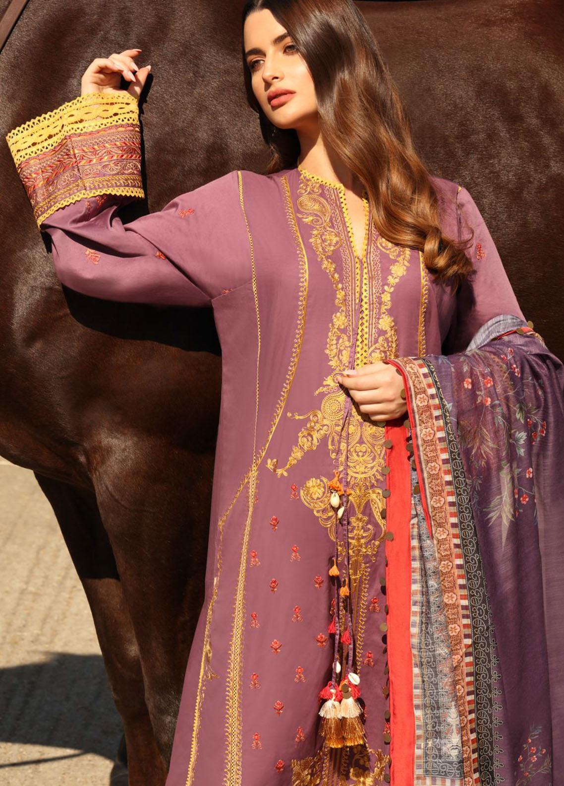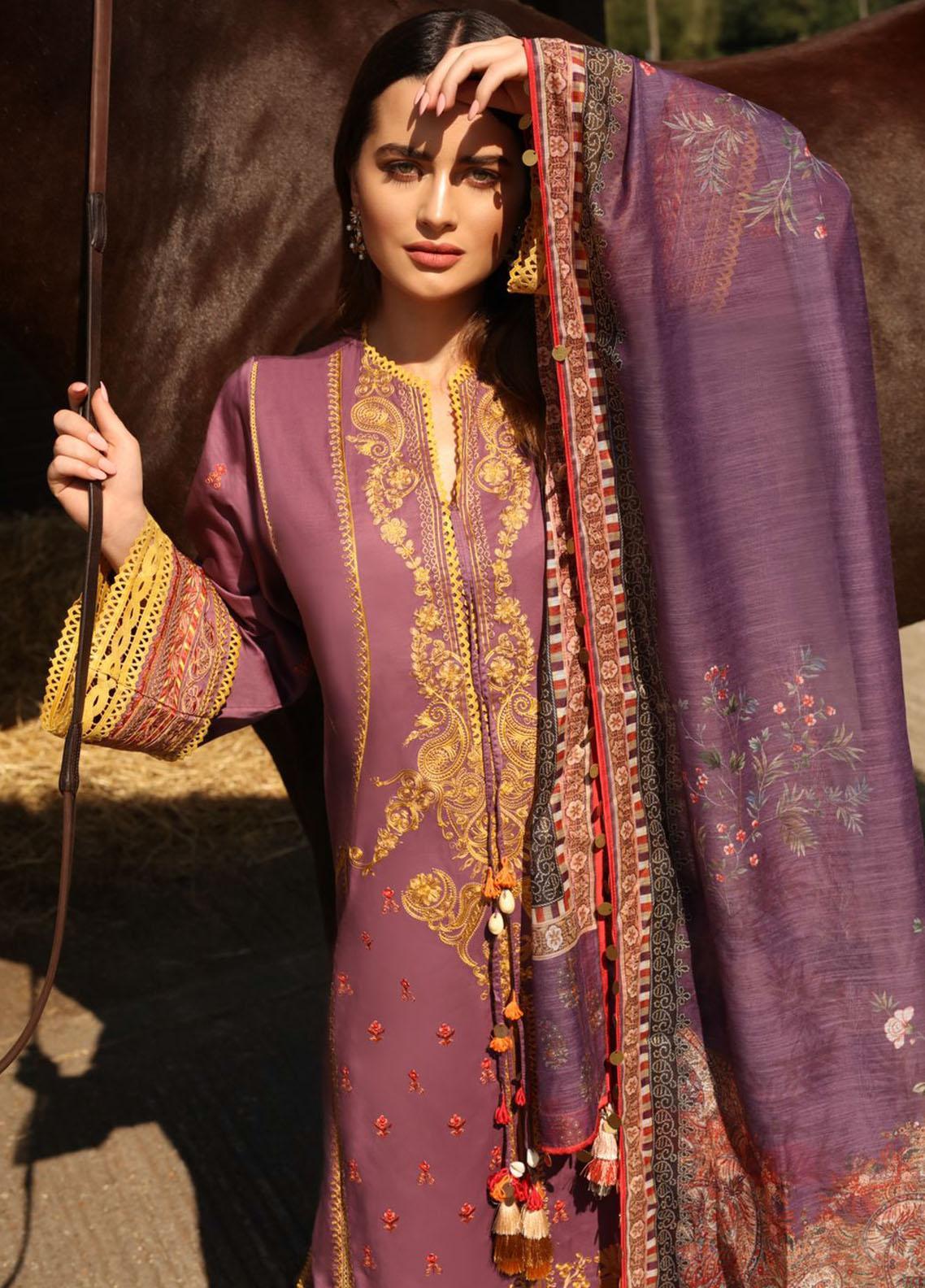 3 Piece Embriodered Cotton Satin Suit
