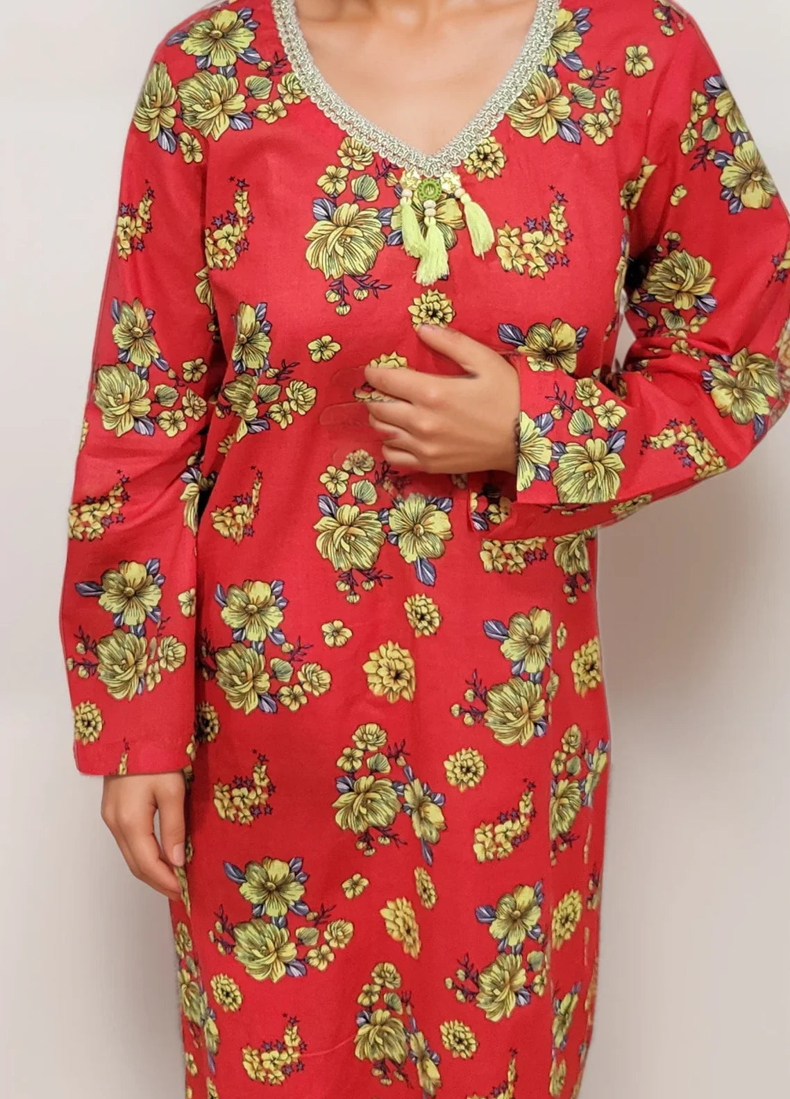 2 PC with floral prints, V-neckline with lace detailing, paired with matching printed trousers.