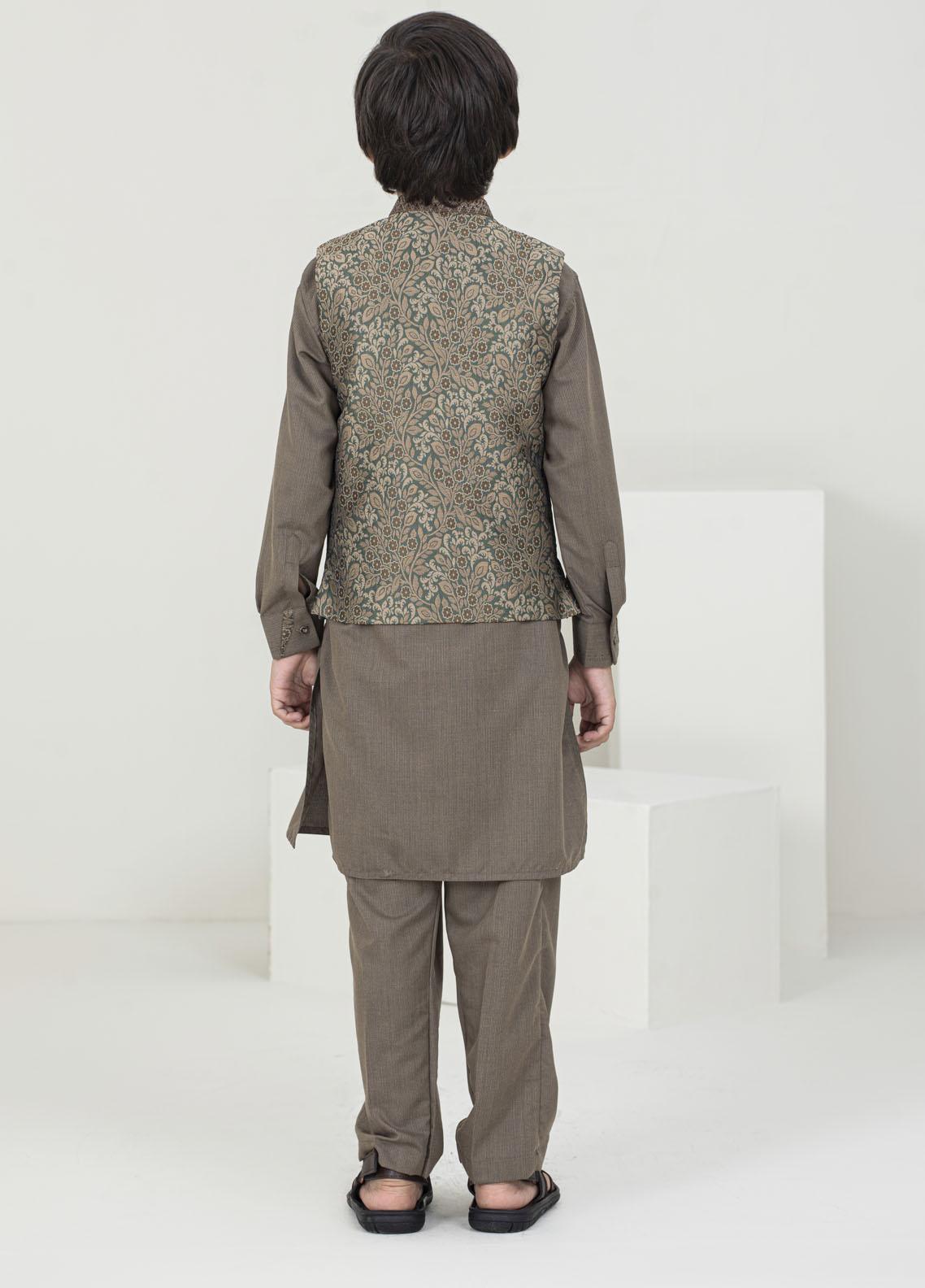 Festive Style Fancy Jamawar with Wash & Wear Waistcoat Suit for Kids