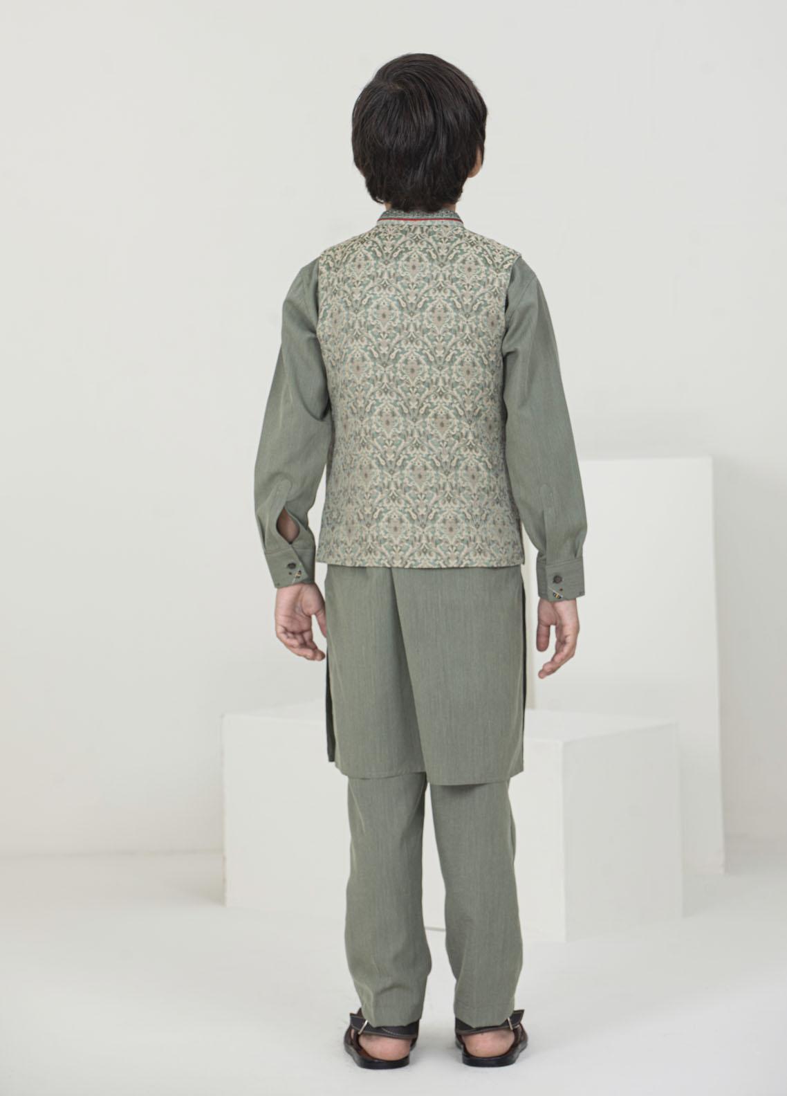 Festive Style Fancy Jamawar with Wash & Wear Waistcoat Suit for Kids
