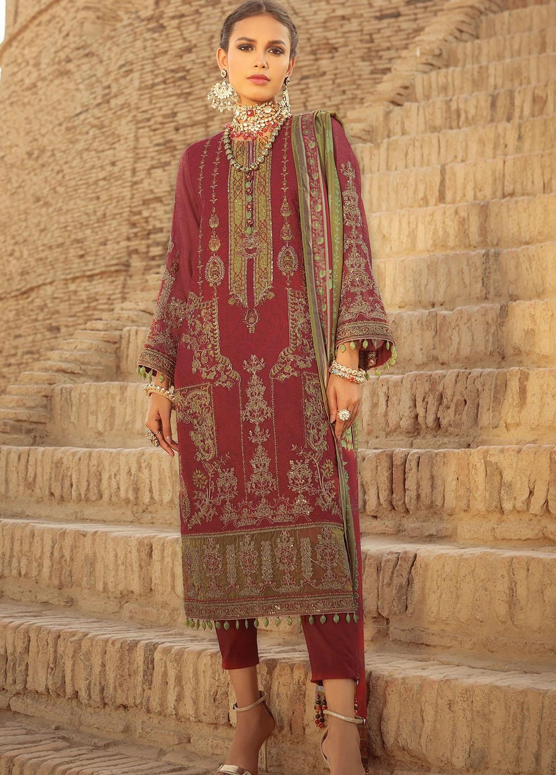 Al Karam Embroidered Cotton Satin Suits Unstitched 3 Piece AK21F-2 FC-17F-21-2-Maroon - Summer Collection