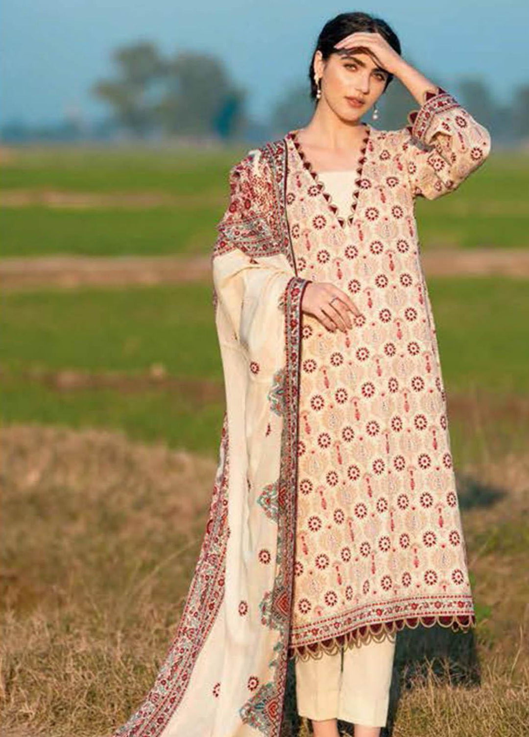 Printed Lawn Dupatta. Printed Lawn Shirt. Dyed Trouser.