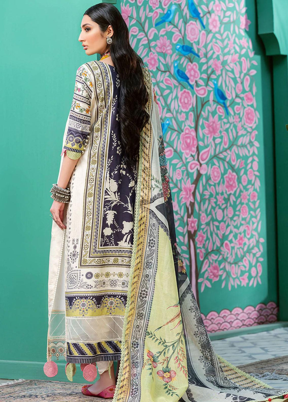 Embroidered Lawn Suits Unstitched 3 PiecePrinted Front Shirt (lawn) 1 meter Printed Back Shirt (lawn) 1.5 meter Printed Sleeves (lawn) 1 meter Embroidered Neckline Embroidered Daman patti 30 inches Printed karandi Dupatta 2.5 Meters Dyed Trouser (Cambric) 2.5 Meters (Extra laces, hangings and accessories are not included) Note: Product color may vary slightly due to photographic lighting or your device settings.