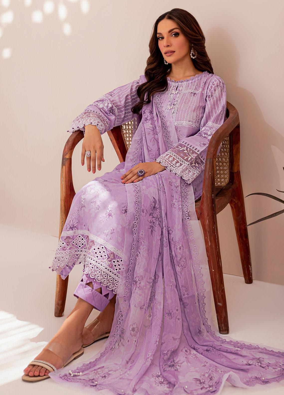 Mehek By Farasha Embroidered Lawn Suits Unstitched 3 Piece FDH23M D-10 Lavender Ray - Festive Collection