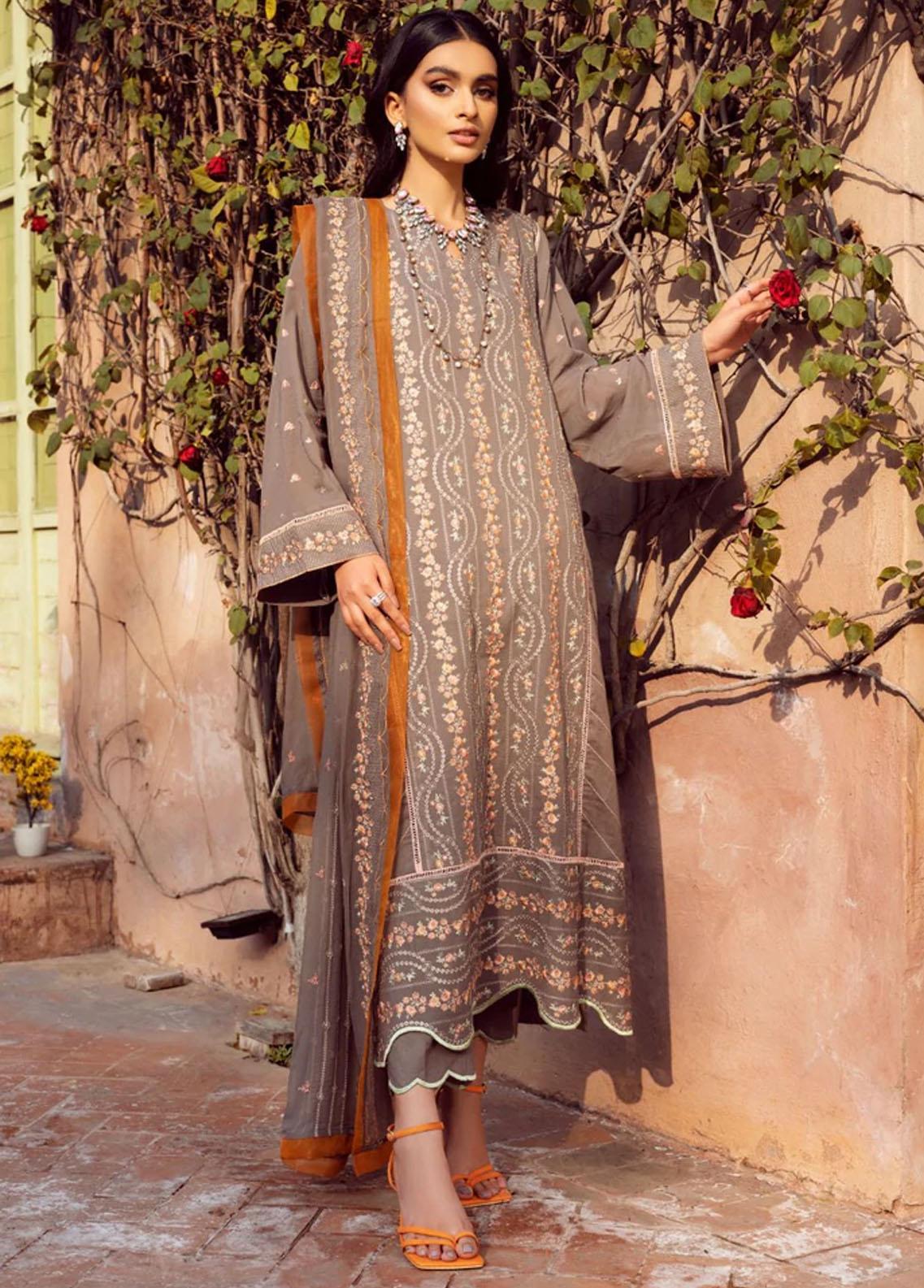 Vintage By LALA Textiles Embroidered Swiss Voile Suits Unstitched 3 Piece LT22V Haze - Summer Collection