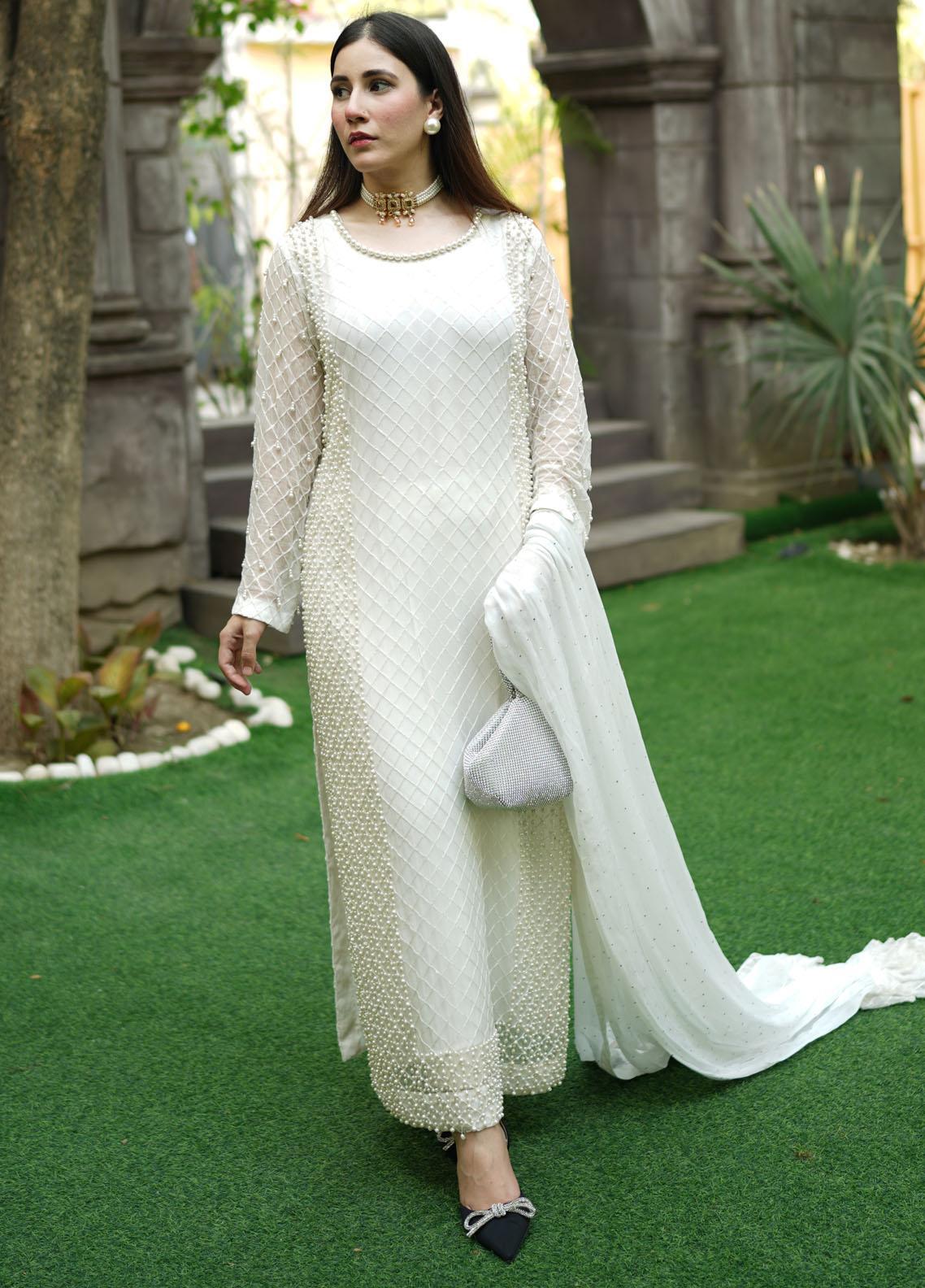 Manaal Arfeen Pret Embroidered 3 Piece Suit White Pearl