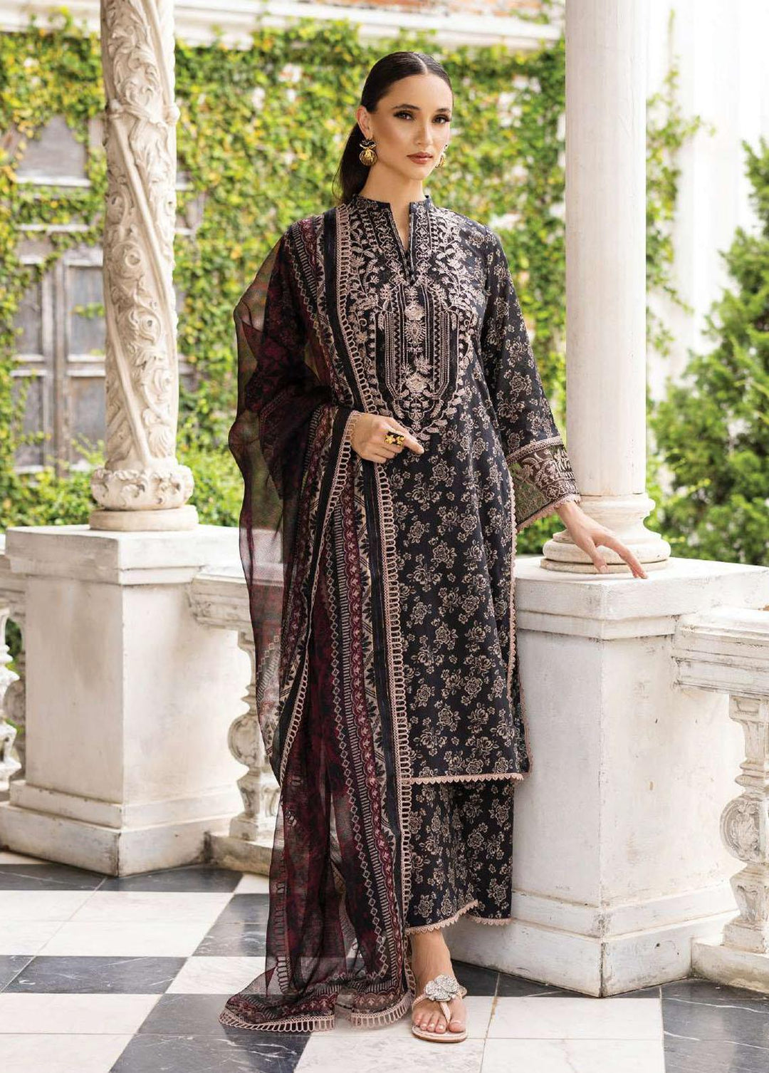 Tahra By Zainab Chottani Embroidered Lawn Suits Unstitched 3 Piece TZC23L Onyx Aura 6A - Summer Collection