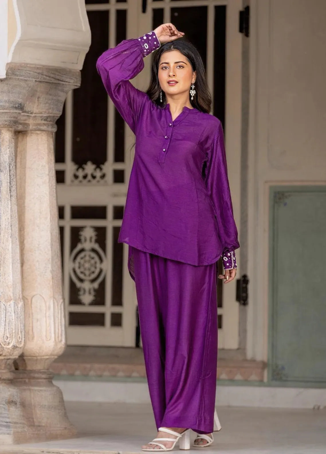 - Shirt Soft Raw Silk Shirt With Embellished Sleeves