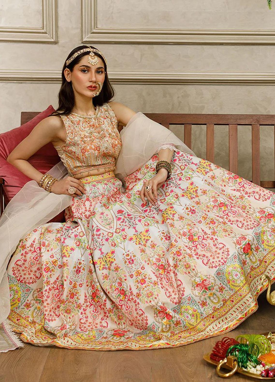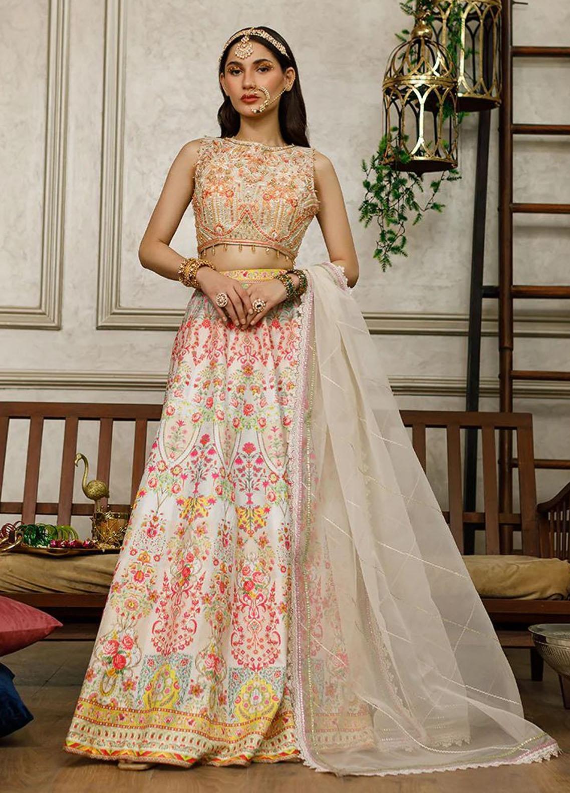 Experience the elegance of a beautifully crafted blouse with intricate floral embroidery Our net blouse is adorned with details of thread zaree dabka delicate handwork and bead finishing This exceptional piece can elevate any ensemble to a level of sophistication and grace Features Net Embroidered Blouse Garnished with a detailed floral pattern using thread zaree and dabka The exquisite handwork and bead finishing further enhance the aesthetic Perfectly Fitted Comes with a handy side zip for ease and comfort Pair this stunner with our exclusively designed Banarsi self jamawar lehenga Printed to perfection the lehenga is internally lined and contains a cancan for added flare perfect for achieving that dreamy ethereal look Highlights Printed Banarsi Self Jamawar Lehenga Meticulously designed with beautiful prints for an elevated appearance Comfort Designed Features an internal lining and a cancan inside for an extra flourish Step into timeless elegance and define your style with our exquisite blouse and lehenga combination