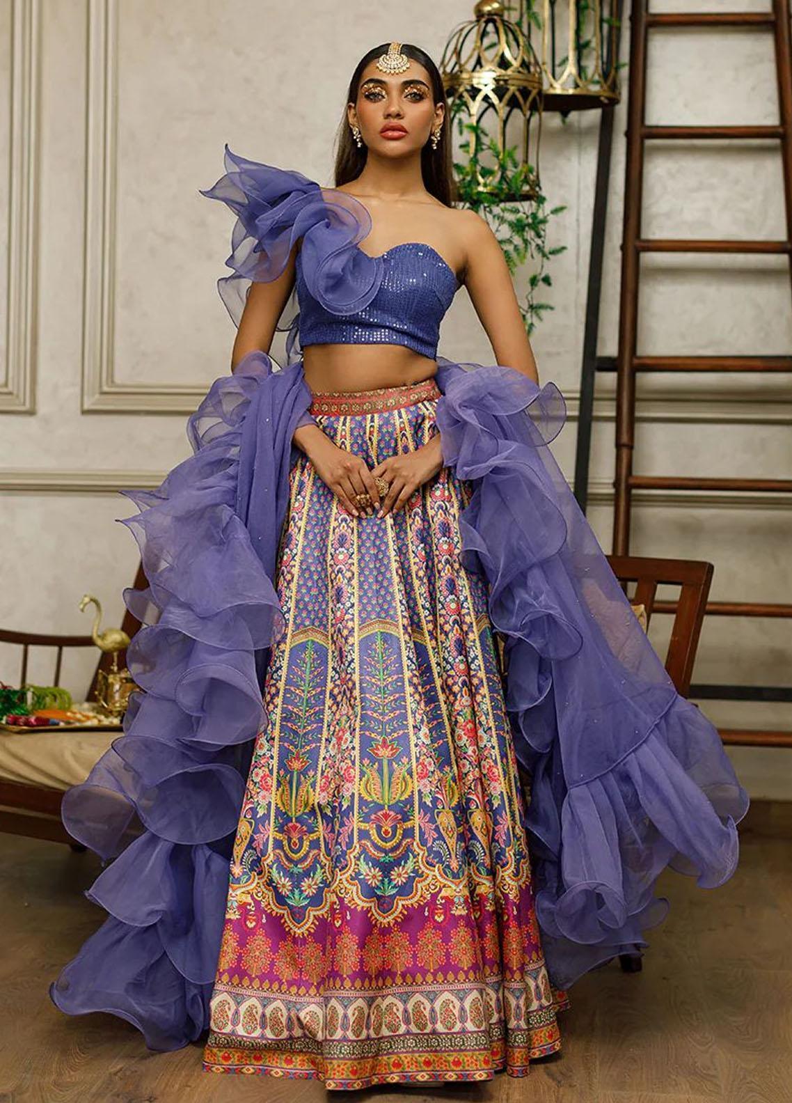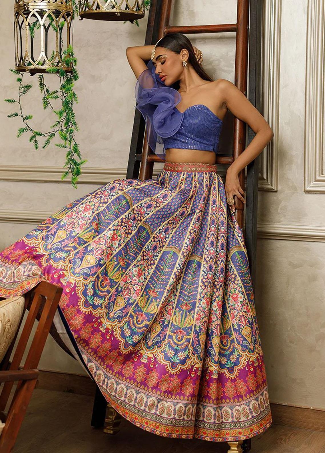 Indulge in the aura of sophistication with our glistening Sequin Strapless Blouse in an enchanting purple shade embellished with an attached organza frill Pair it with our Banarsi self Jamawar printed Lehenga for an unmistakably classy royal look Pieces Included Sequin Blouse Exquisite sequin designed blouse with a handy side zip Printed Lehenga Beautifully printed lehenga that comes with a cancan inside for added flair Indulge in this look TODAY for a timeless elegance