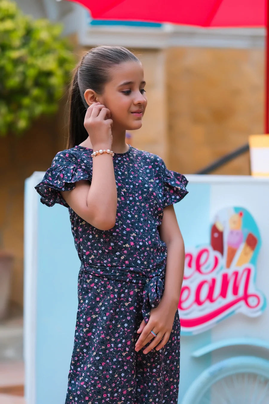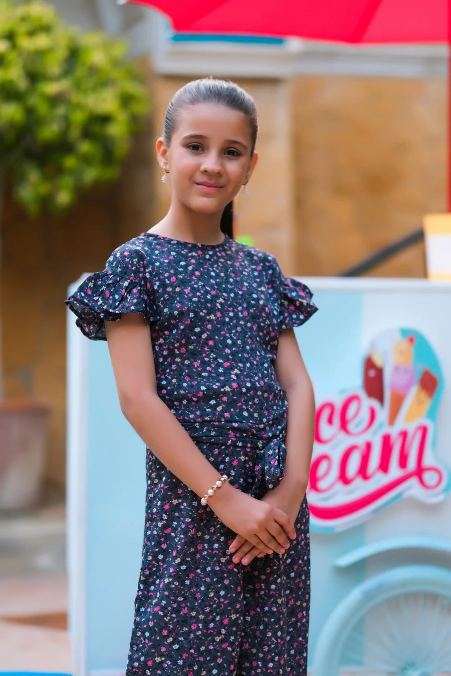 Grey Pink Floral Print Ruffle Jumpsuit. This one piece printed jumpsuit sets out a vibe of vibrant colors and bold prints giving a comfortable and modern stylize look in completing your children’s wardrobe.